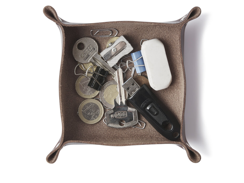 Diese praktische Schreibtischablage aus italienischem Rindleder eignet sich perfekt zur Aufbewahrung Ihres Untersetzersets oder kleiner loser Schreibtischutensilien. In unserem Atelier in Waalwijk hergestellt und in Schwarz, Mokka, Cognac und Rot erhältlich.