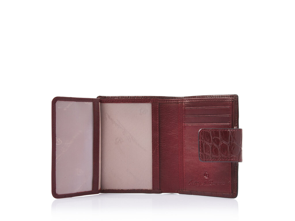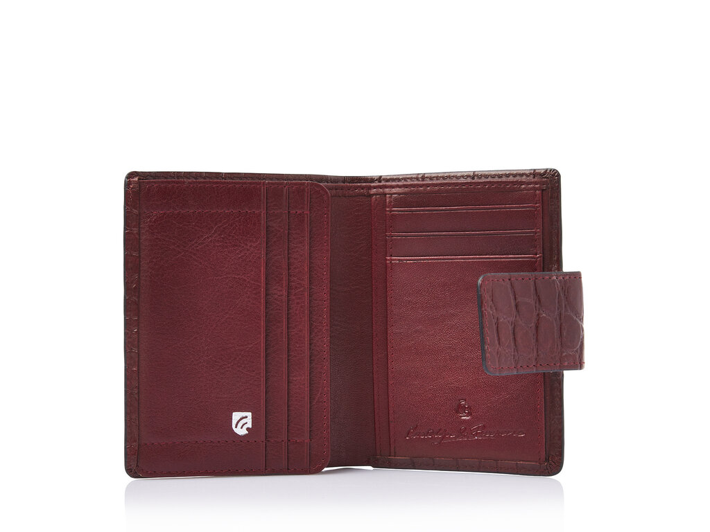 Luxuriöse Leder-RFID-Geldbörse mit großzügigen Fächern für Scheine und Münzen. Ausgestattet mit 6 Kartenfächern und einem separaten Fach für den Führerschein. Die integrierte RFID-Folie schützt Ihre Karten zuverlässig vor Datendiebstahl. Hergestellt aus hochwertigem, pflanzlich gegerbtem Bullenleder mit klassischer Kroko-Prägung. Veredelt mit einem antiksilberfarbenen C&B-Logo.