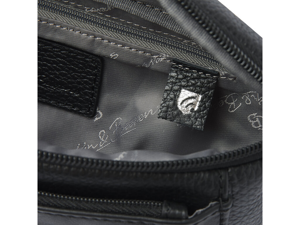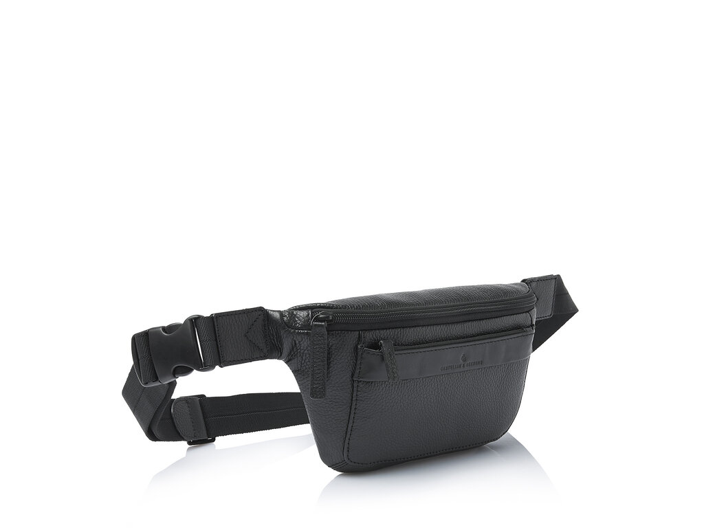 Die Gürteltasche aus der Onyx-Kollektion ist wie geschaffen für komfortables Reisen. In den verschiedenen Reißverschlusstaschen, von denen eine mit einem Hightech-RFID-Futter ausgestattet ist, lassen sich alle wichtigen Utensilien leicht verstauen. Dieses schützt Karten und Pässe vor Skimming. Der Nylon-Hüftgurt ist verstellbar und lässt sich mit einem stabilen Kunststoffverschluss schließen. Das italienische Leder ist nachhaltig nach den Richtlinien der Leather Working Group gegerbt und daher besonders langlebig. Die zeitlosen Designs der ONYX-Kollektion zeichnen sich durch die Kombination von elegant genarbtem Leder mit einem horizontalen band aus, in den das C&B-Logo dezent eingeprägt ist. Die Farbe...elegantes Schwarz.