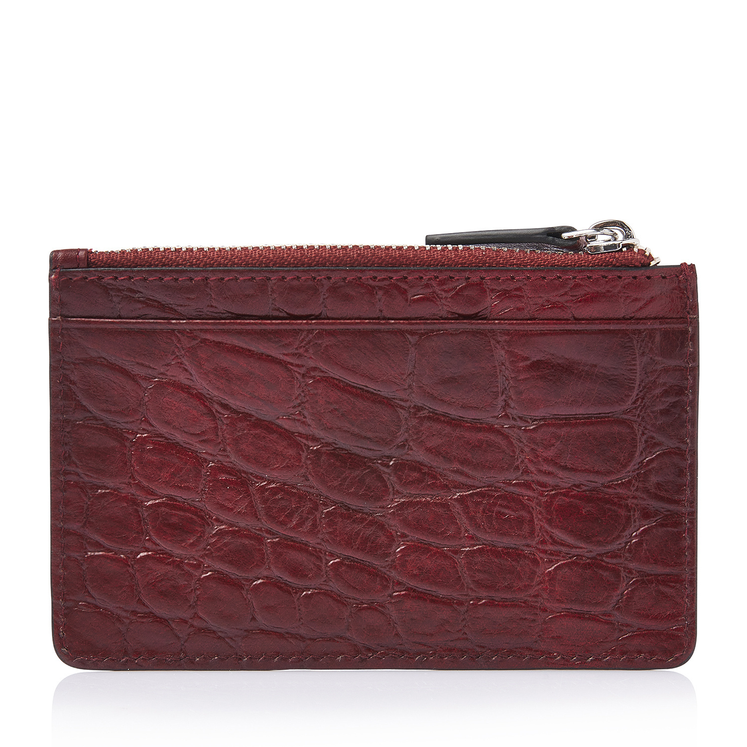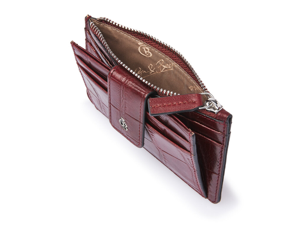 Kompaktes Leder-RFID-Mini-Wallet mit Reißverschlussfach – ideal für Ihre meistgenutzten Karten und etwas Bargeld. Gefertigt aus hochwertigem, pflanzlich gegerbtem Bullenleder mit klassischer Kroko-Prägung, entwickelt in Zusammenarbeit mit unserer toskanischen Partnergerberei. Stilvoll, nachhaltig und praktisch. Das antiksilberfarbene C&B-Metalllogo unterstreicht die luxuriöse Optik.