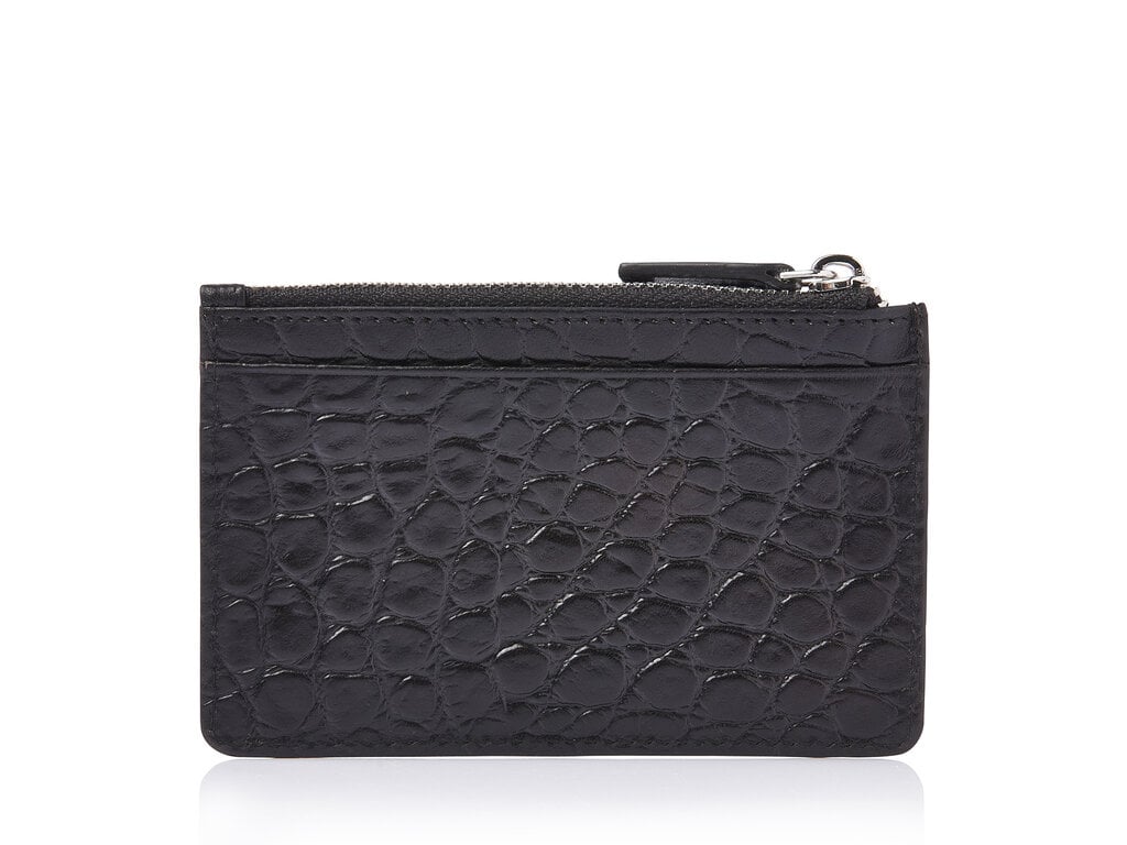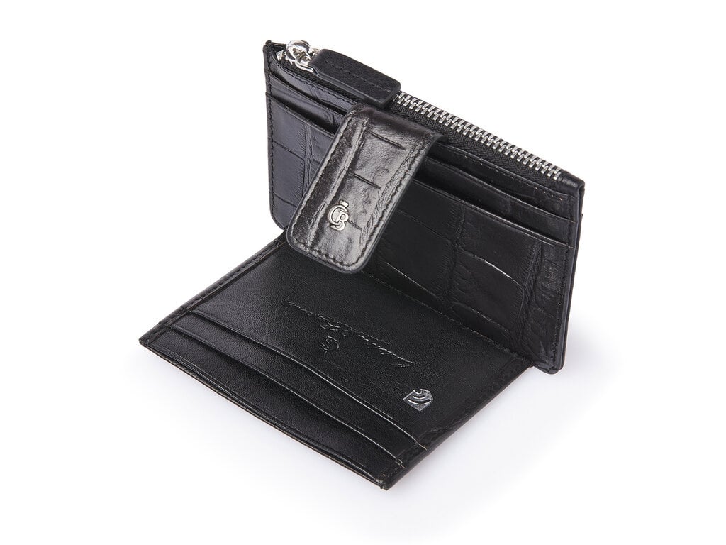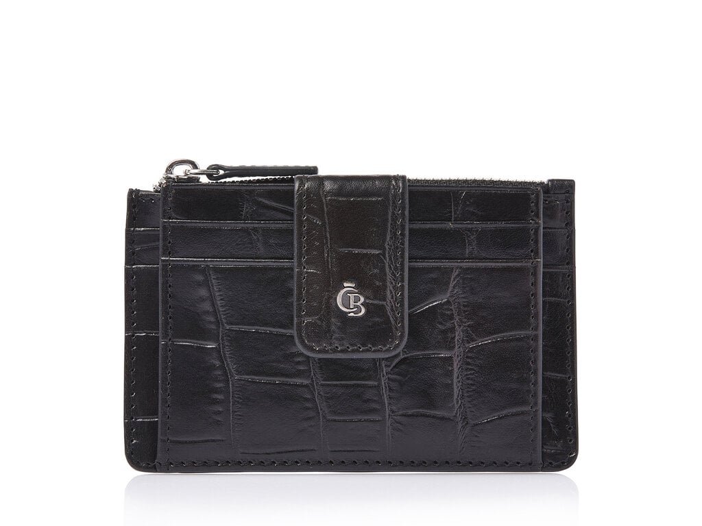 Kompaktes Leder-RFID-Mini-Wallet mit Reißverschlussfach – ideal für Ihre meistgenutzten Karten und etwas Bargeld. Gefertigt aus hochwertigem, pflanzlich gegerbtem Bullenleder mit klassischer Kroko-Prägung, entwickelt in Zusammenarbeit mit unserer toskanischen Partnergerberei. Stilvoll, nachhaltig und praktisch. Das antiksilberfarbene C&B-Metalllogo unterstreicht die luxuriöse Optik.
