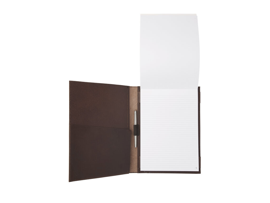 Robuste A4-Schreibmappe aus Leder. Zeitlos und funktional. Sie verfügt über eine Stifthalterung, einen Schreibblock (100 Blatt) und ein Einsteckfach. Eine nachhaltige Wahl, denn das Leder wird nach den Richtlinien der Leather Working Group pflanzlich gegerbt. Hergestellt in unserer Werkstatt in Waalwijk und erhältlich in Schwarz, Mocca und Cognac.