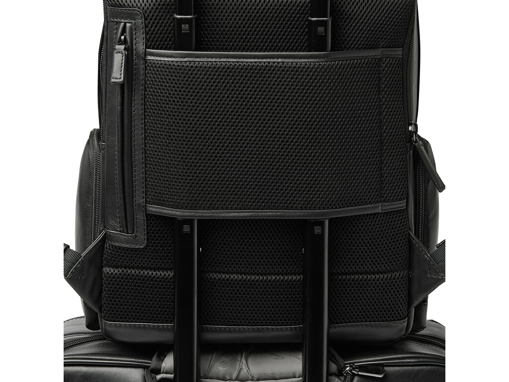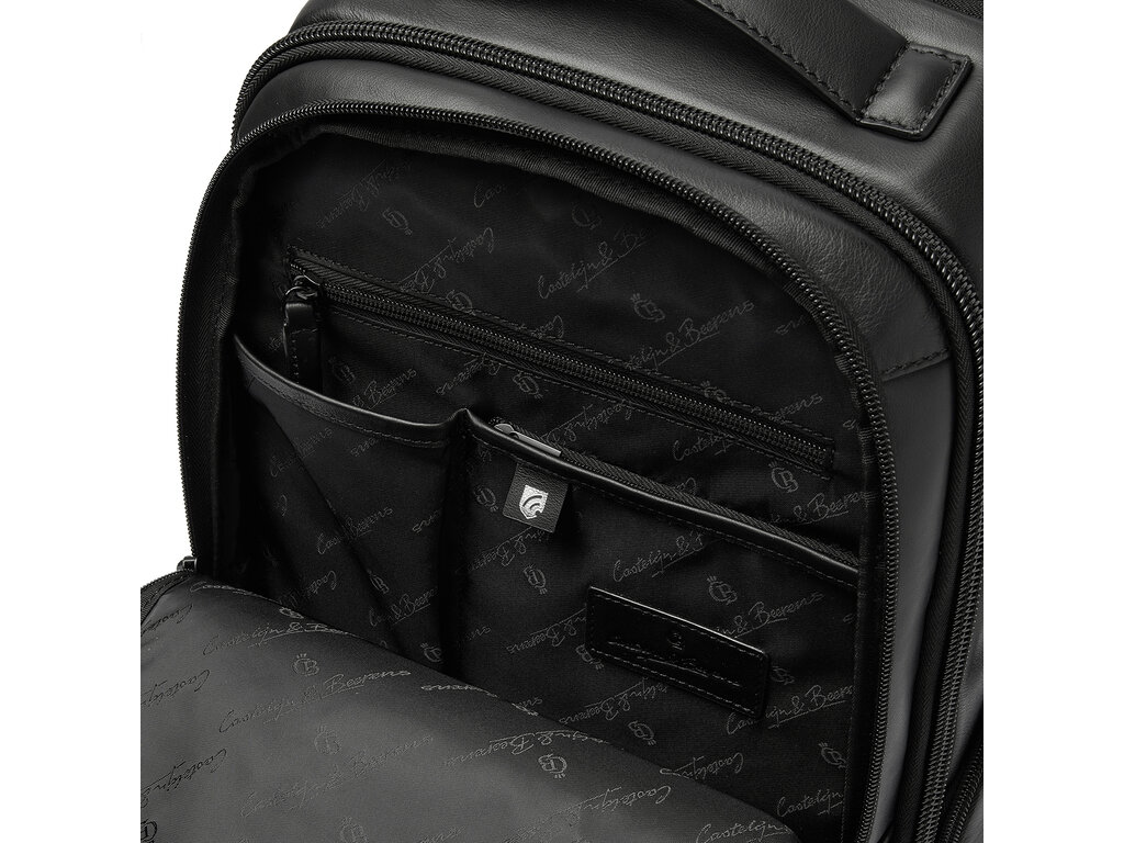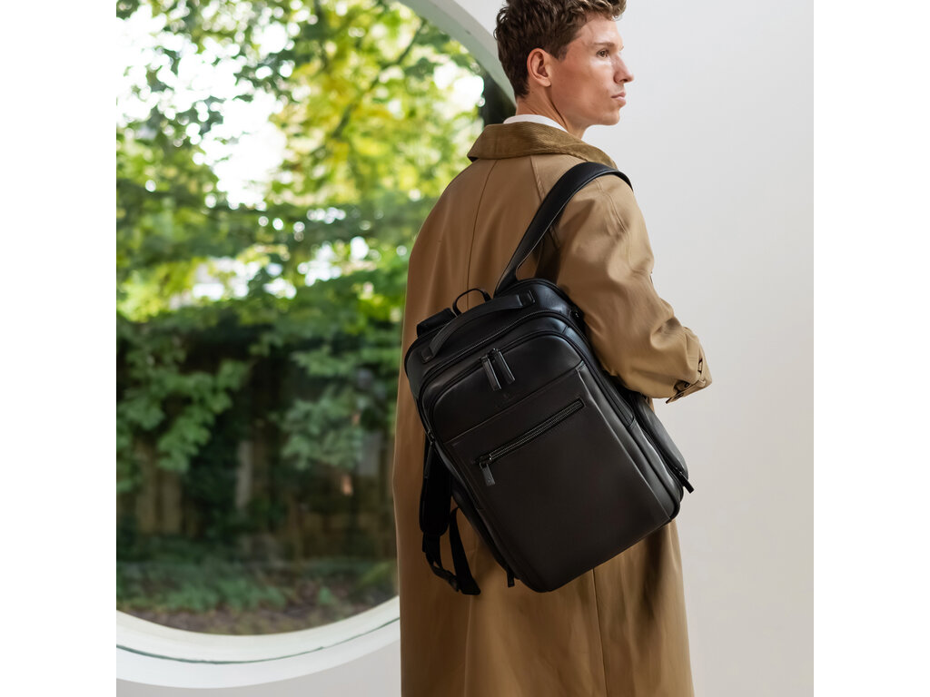 Machen Sie Bekanntschaft mit Ihrem idealen Reisepartner. Der UNIFORM 15,6-Zoll Rucksack sorgt definitiv dafür. Mit einem Kleiderfach, einem verstärkten Laptop-Fach für 15,6 Zoll und einem speziellen RFID-Fach für Ihren Reisepass ist dieser Rucksack ideal für ein Wochenendausflug. Dieser Lederrucksack ist bequem zu tragen, dank der gepolsterten Schultergurte, und der Trolley-Gurt ist nützlich, wenn Sie den Rucksack auf einem Koffer mitnehmen. Das robuste Laptop-Fach auf der Rückseite ist einfach zugänglich, ohne die gesamte Tasche öffnen zu müssen. Das italienische Leder ist außerdem nach den Richtlinien der Leather Working Group verantwortungsbewusst gegerbt. Ein charakteristisches Merkmal der NAPPA X Kollektion ist die Kombination von hochwertigem Nappaleder mit verfeinerten schwarzen Metallbeschlägen, was dieser Technik-Kollektion von Castelijn & Beerens ein anspruchsvolles und elegantes Aussehen verleiht. Der Rucksack wird mit einer praktischen Regenhülle von Castelijn & Beerens geliefert.