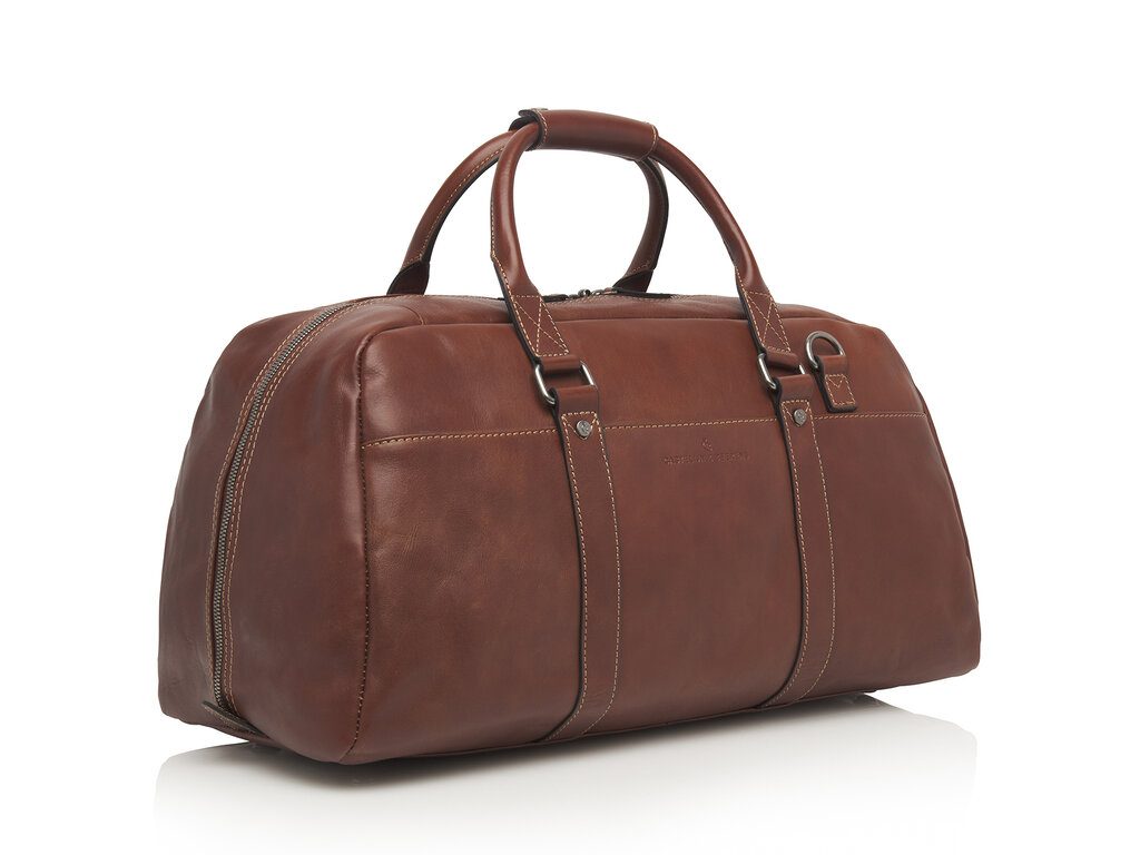 Wochenendtasche aus hochwertigem italienischem Rindsleder. Diese Reisetasche ist ideal für einen Kurztrip. Der Reißverschluss reicht an beiden Seiten bis zum Boden, sodass sich die Tasche vollständig öffnen lässt. Besonders beim Packen ungemein praktisch. Diese lederne Wochenendtasche bietet viel Platz und überzeugt gleichzeitig durch einen kompakten Aufbau. Platz, weil Sie für mehrere Tage Bekleidung darin unterbringen können, und kompakt, weil die Tasche bei den meisten Airlines als Handgepäck gilt. Im speziellen RFID-Reißverschlussfach sind Ihre Bank-, Kreditkarten und Ausweise vor Skimming geschützt. Der Weekender aus Leder verfügt über einen abnehmbaren Schulterriemen aus Leder. Sowohl in der Hand als auch auf der Schulter zu tragen. Das C&B-Logo wurde subtil eingeprägt. Die Businesstasche aus Leder ist in den Farben Mokka und Hellbraun erhältlich.