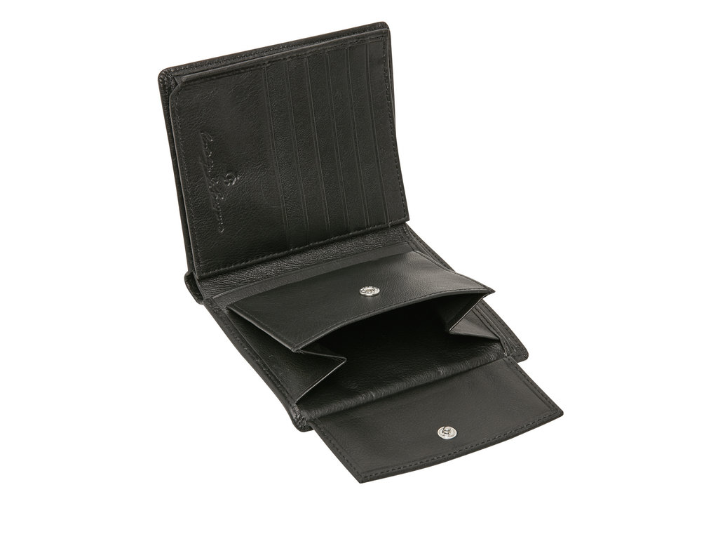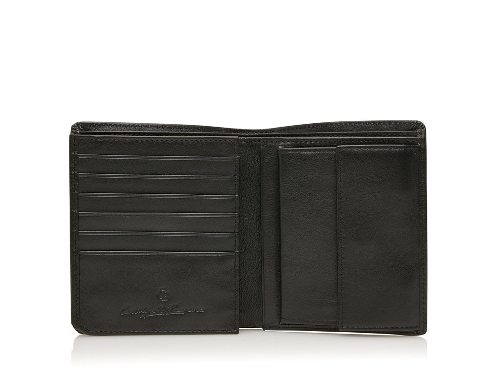Classic style high RFID billfold. This popular tri fold wallet features 10 creditcard slots, ID/driving licence window, 2 cash sleeves, several "hidden" compartments for receipts and notes ánd a coin compartment. The Vita collection is equipped with a high-tech foil that prevents your personal data being skimmed through the RFID chip on your cards. The Vita-range is made from the best cow nappa leather with a soft feeling. The circle shaped metal C&B-logo makes gives this range it's contempary touch.