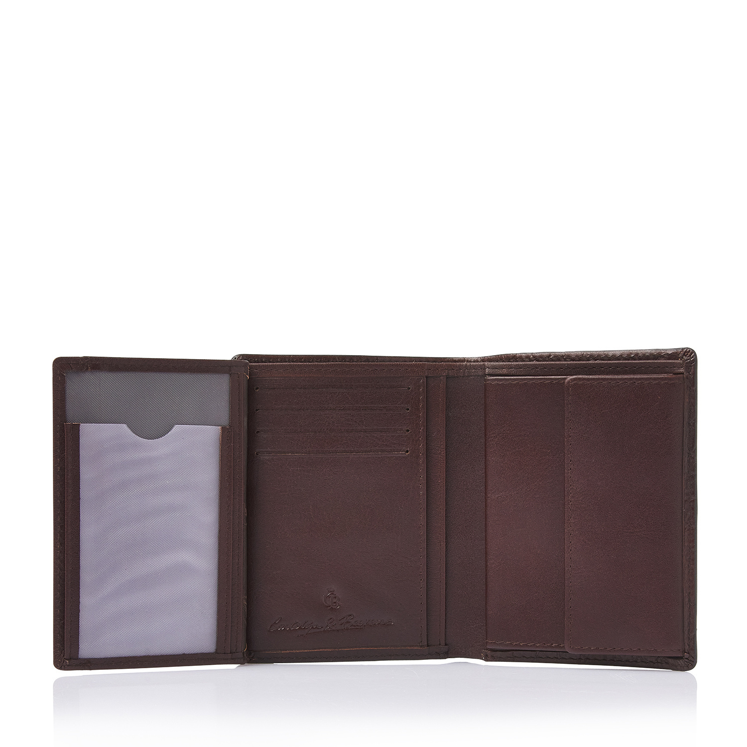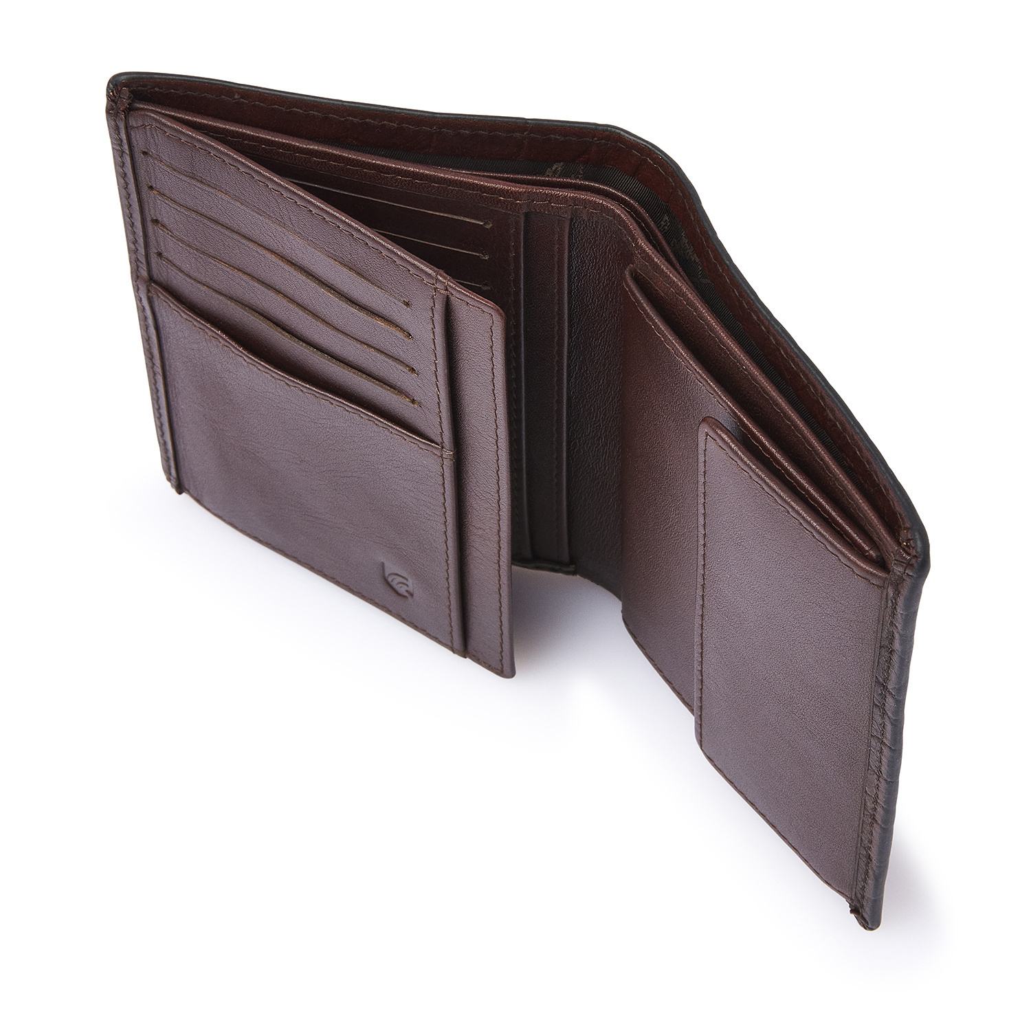 Highly practical leather billfold wallet with RFID protection. Features 9 card slots and a separate compartment for a driving licence. The high-tech foil prevents unauthorized reading of personal data. Crafted from sustainably tanned bull leather with a classic croco print and finished with an antique-silver C&B logo.