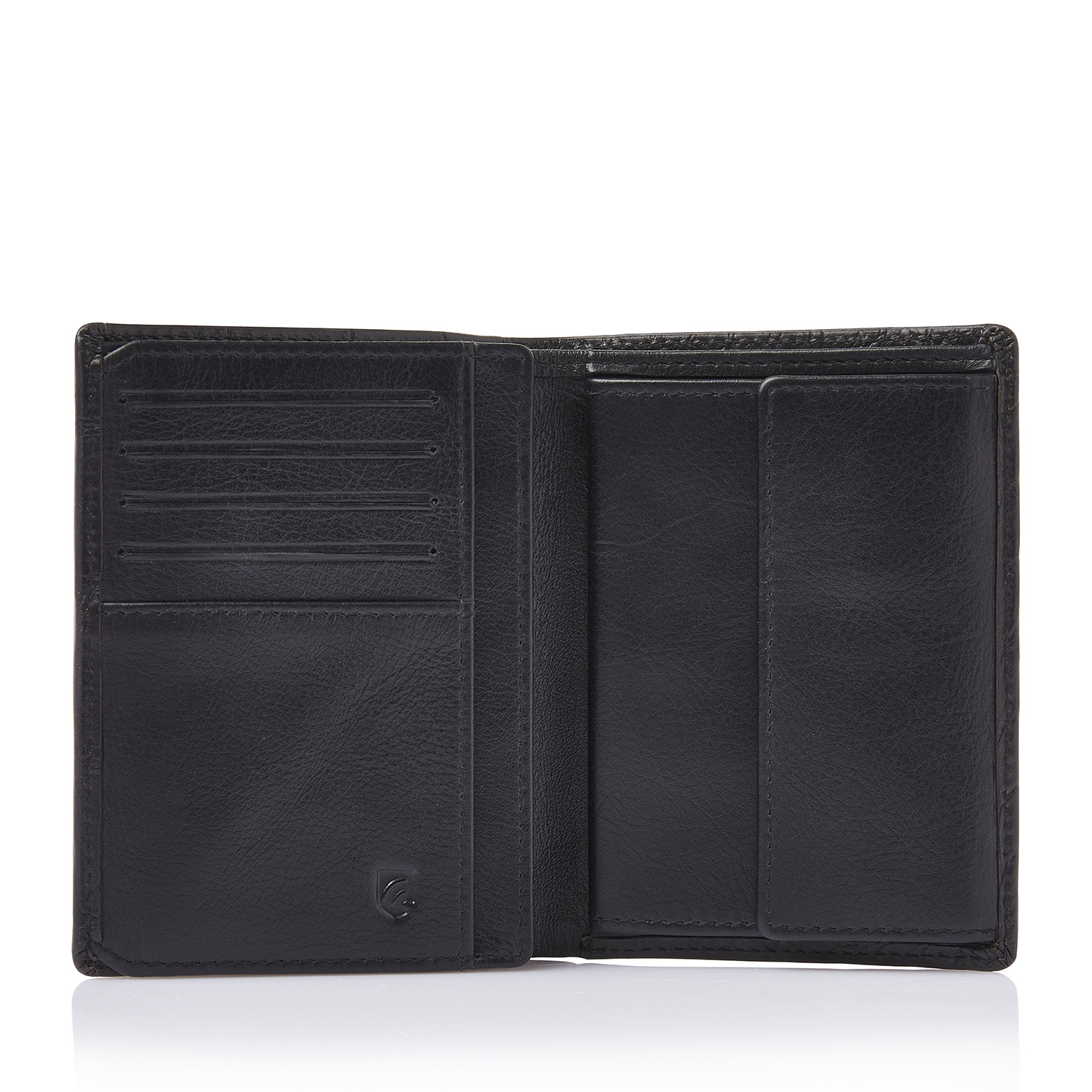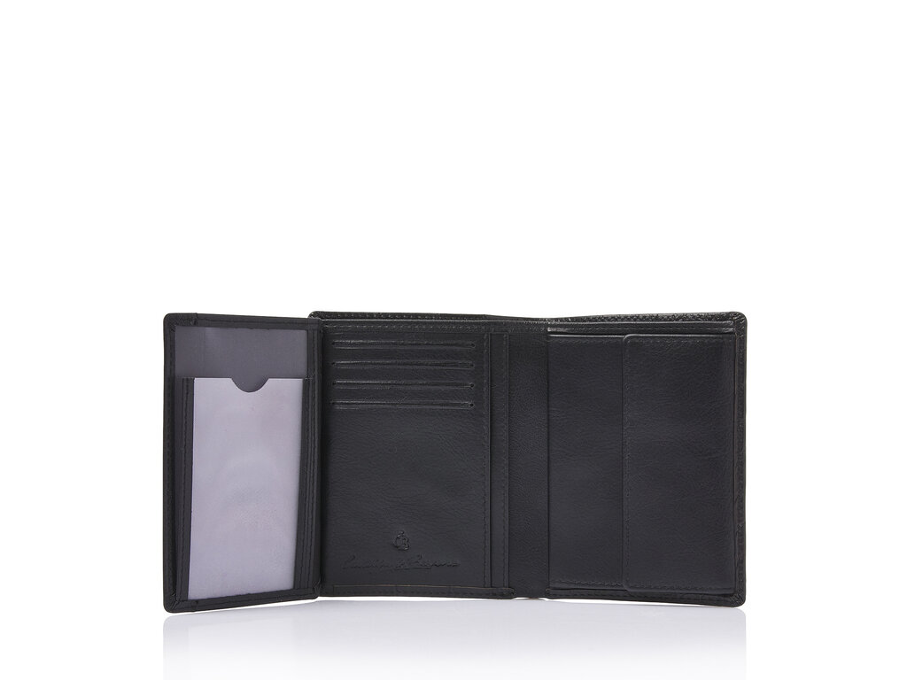 Highly practical leather billfold wallet with RFID protection. Features 9 card slots and a separate compartment for a driving licence. The high-tech foil prevents unauthorized reading of personal data. Crafted from sustainably tanned bull leather with a classic croco print and finished with an antique-silver C&B logo.