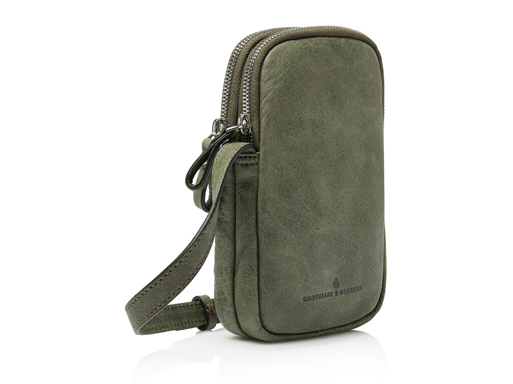 Elegant, functional, and sustainable. This crossbody phone bag has it all. The 2 separate zippered compartments provide space for a smartphone and, for example, a small wallet or glasses. The bag also features 3 credit card slots and an adjustable leather shoulder strap. For this collection, we developed high-quality supple leather in collaboration with our Italian partner tannery. Moreover, it is sustainable, as the leather from Veneto is tanned according to the guidelines of the Leather Working Group.