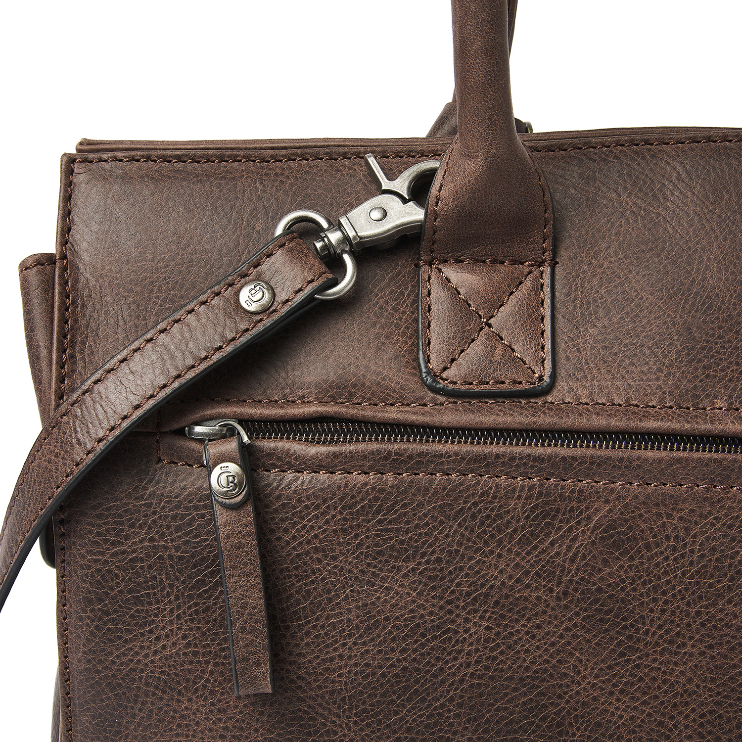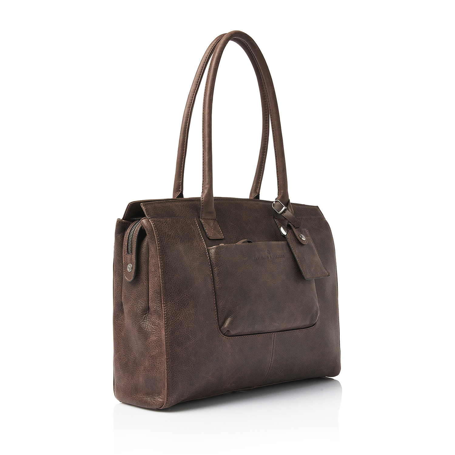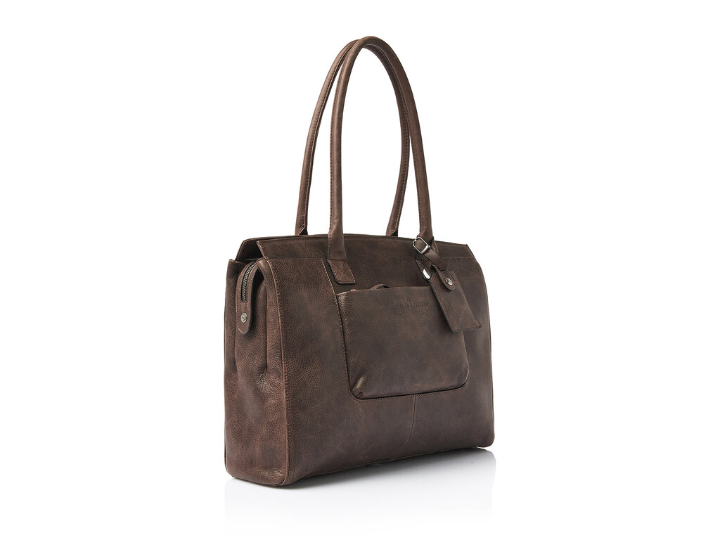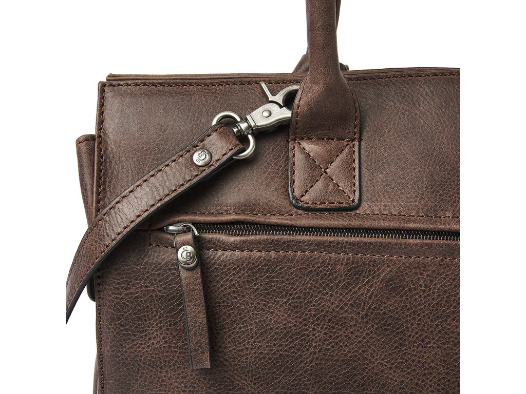 Elegant shoulder bag designed for 15,6" laptop. The main compartment has 3 pockets of which 1 has a foamed and protective laptop/tablet pocket. Apart from that the bag holds several zip pockets for personal belongings and documents. The leather shoulderstrap is adjustable and detachable. This is 1 of the 6 styles in the Carisma collection. Carisma is made from supple Italian bovine leather with a natural grain. The Italian leather is tanned in a sustainable way according to the protocols of the Leather Working Group.