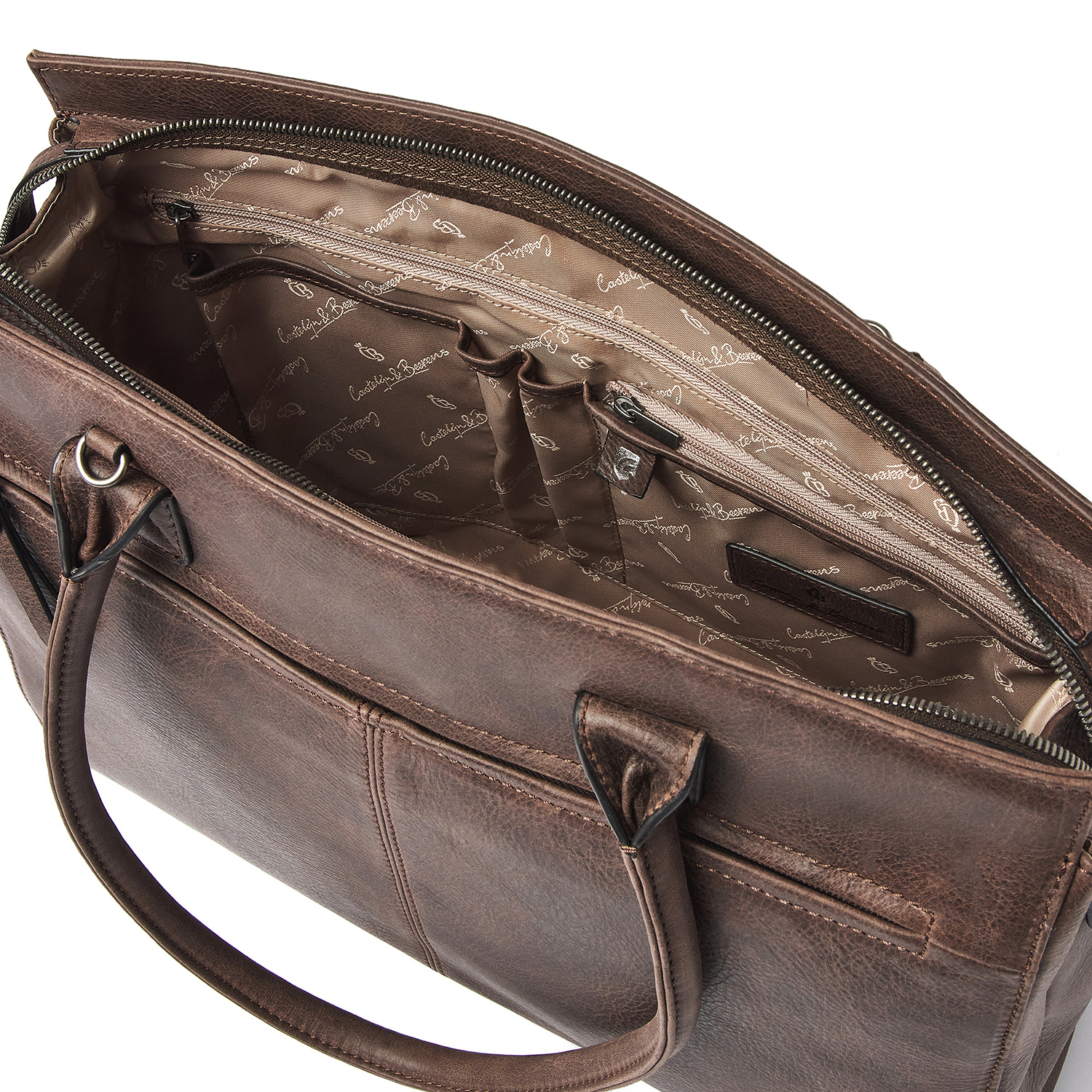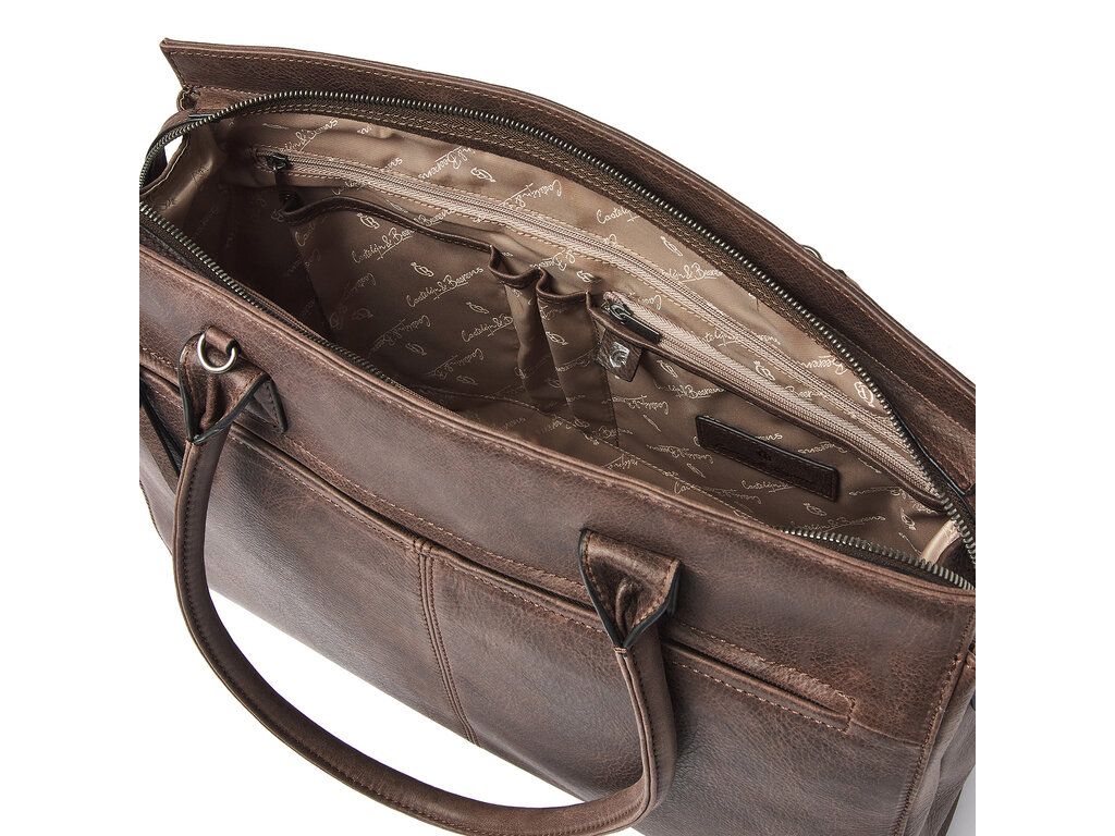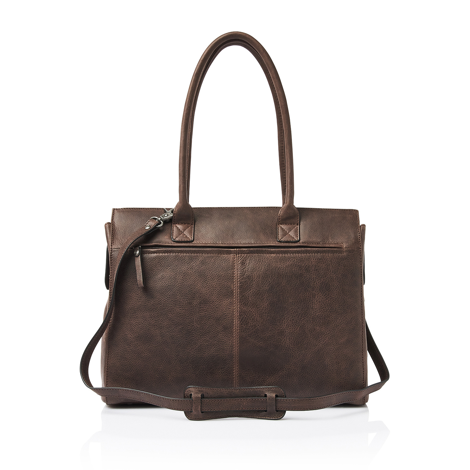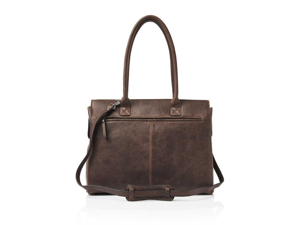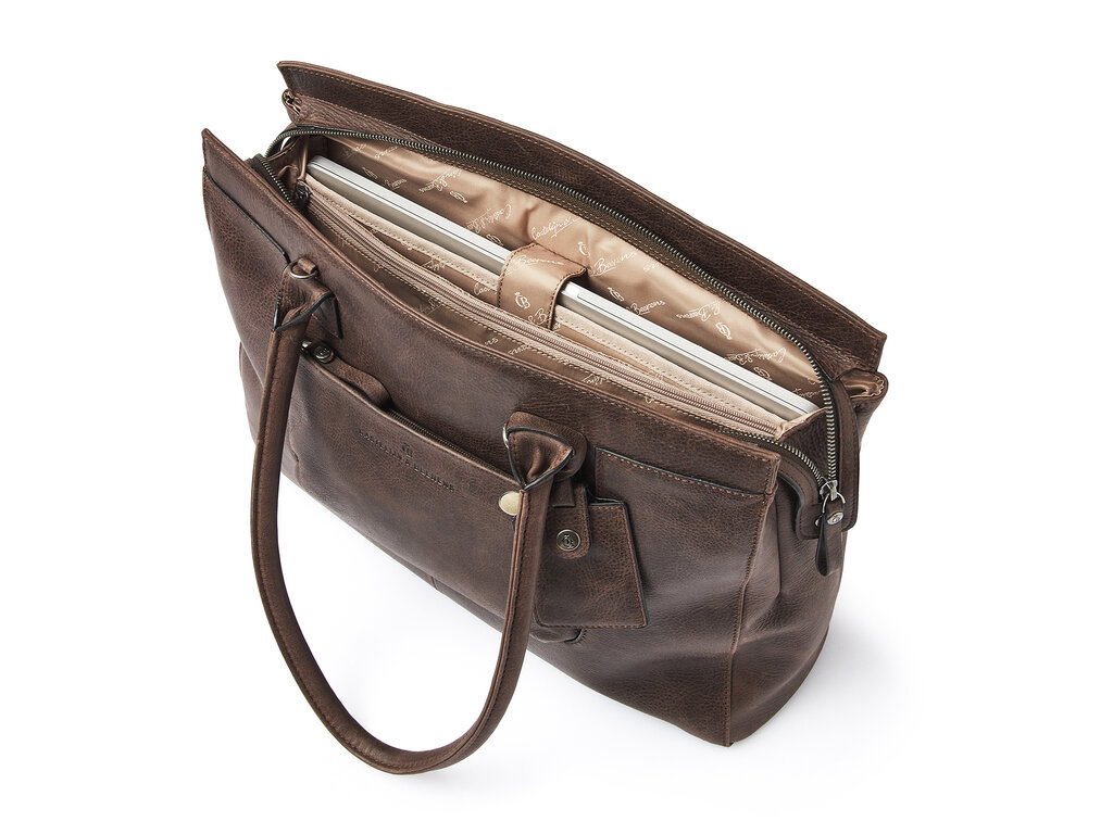 Elegant shoulder bag designed for 15,6" laptop. The main compartment has 3 pockets of which 1 has a foamed and protective laptop/tablet pocket. Apart from that the bag holds several zip pockets for personal belongings and documents. The leather shoulderstrap is adjustable and detachable. This is 1 of the 6 styles in the Carisma collection. Carisma is made from supple Italian bovine leather with a natural grain. The Italian leather is tanned in a sustainable way according to the protocols of the Leather Working Group.