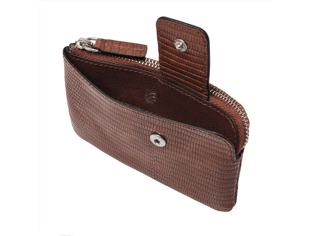 Stylish leather key case with functional RFID pocket for cards. The Donna collection is made from vegetable-tanned and printed Italian cowhide. The old silver metal C&B logo accentuates the luxurious look. Donna small leathergoods are equipped with high-tech foil, protecting personal data from being scanned on cards with RFID chip. Available in black and cognac.