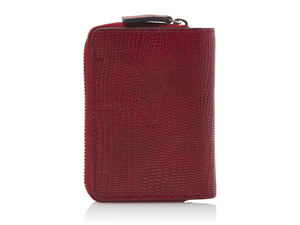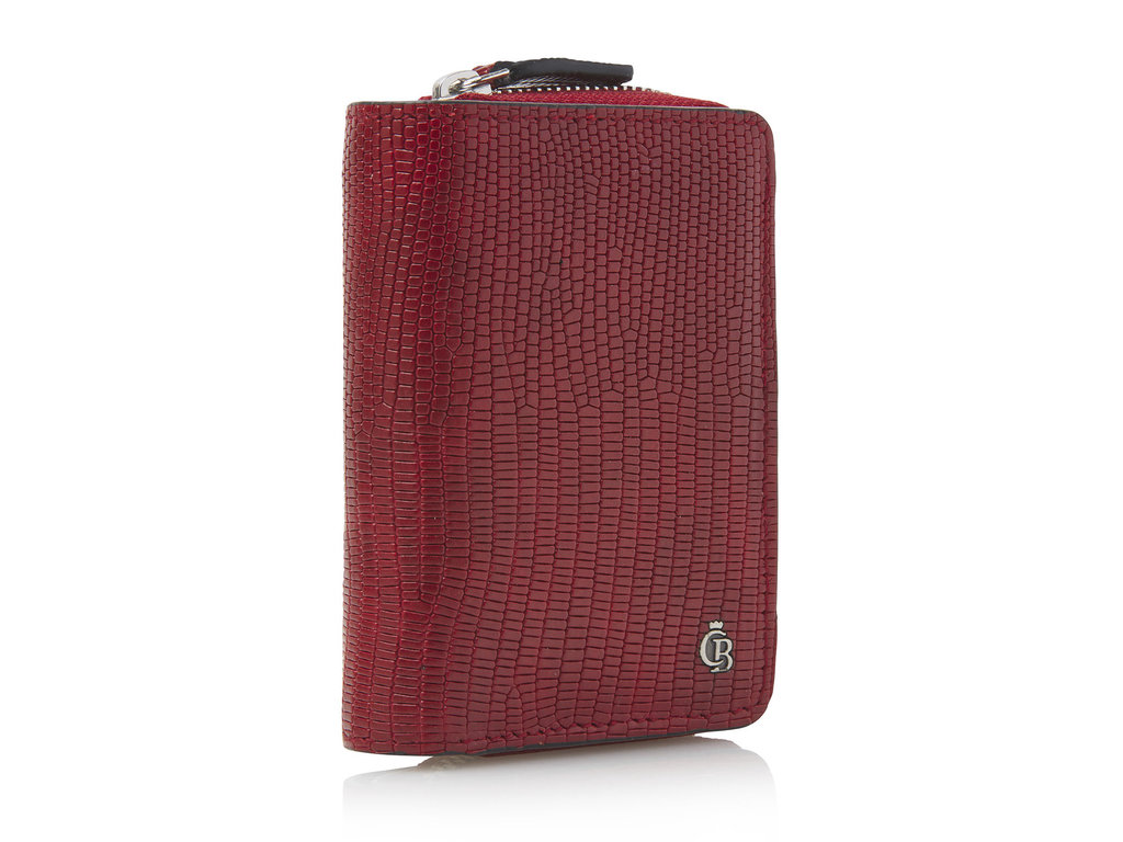 Protective RFID wallet featuring 4 creditcard slots, 1 cash sleeve and extra zip compartment that can be used for coins, receipts and notes. The Donna collection is made from vegetable-tanned and printed Italian cowhide. The old silver metal C&B logo accentuates the luxurious look. Donna small leather goods are equipped with high-tech foil, protecting personal data from being scanned on cards with RFID chip. Availible in black, cognac and red.