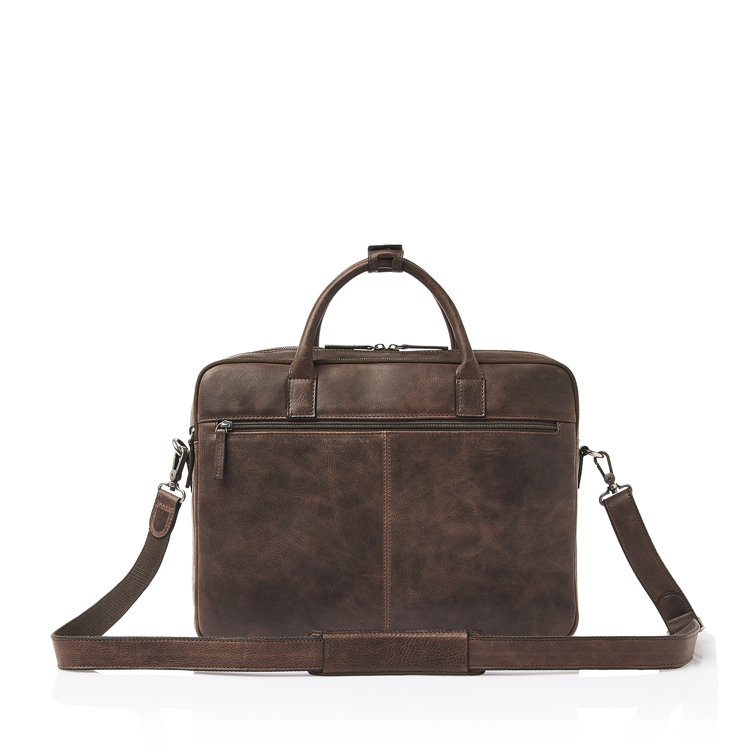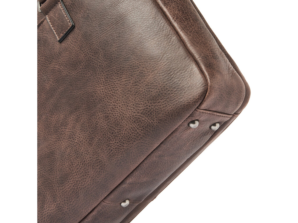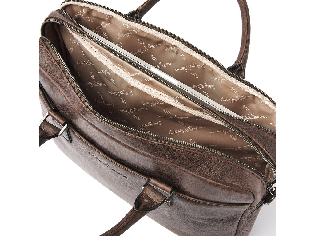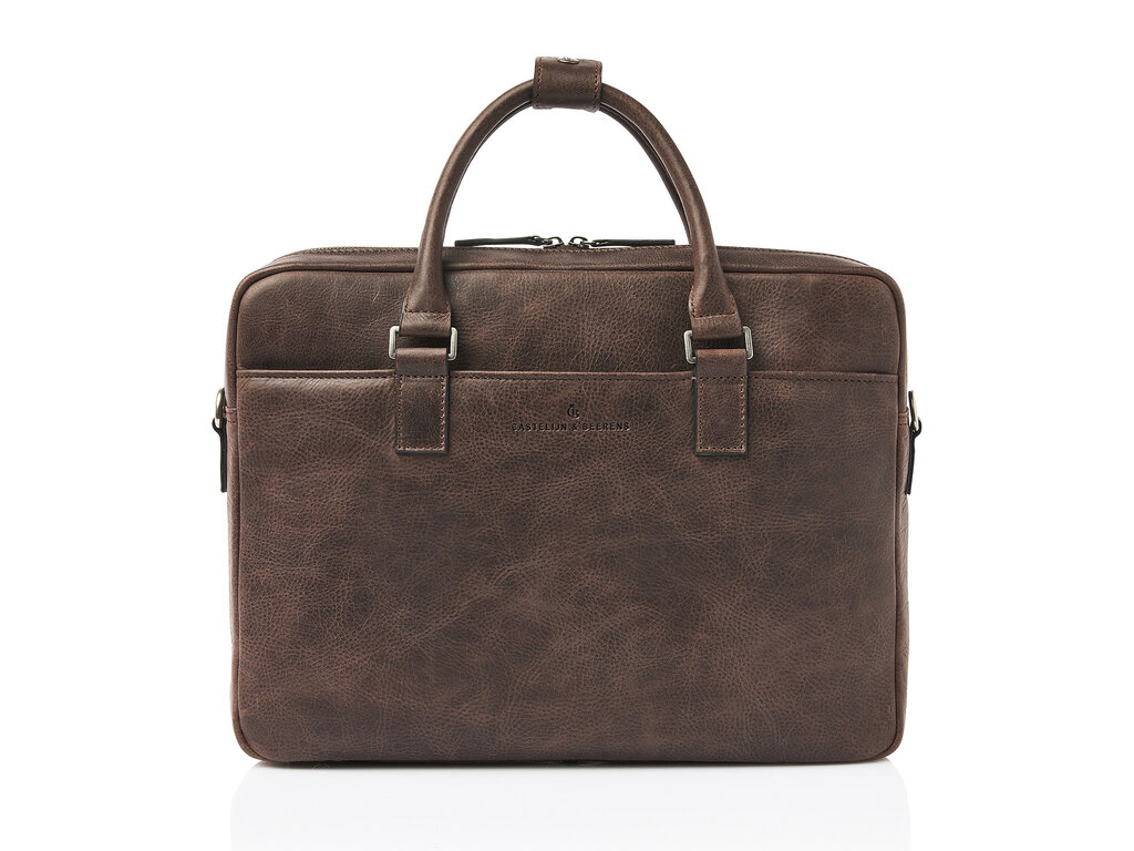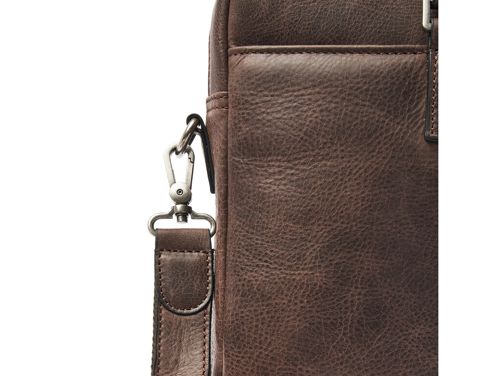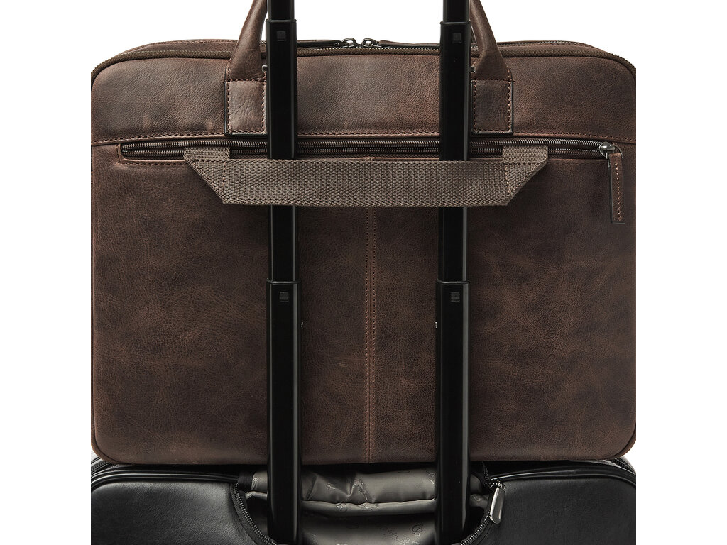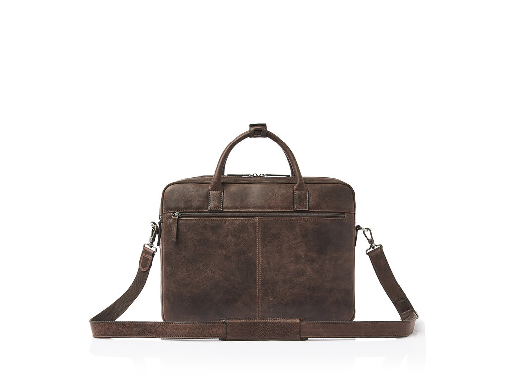 Simplicity is elegance. This leather laptop bag from the Carisma collection proves that. The laptop bag is divided into two main compartments, one of which is equipped with a reinforced 15.6" laptop pocket and a tablet pocket. Additionally, the leather business bag has various zipper and slip pockets for personal items and documents. The laptop bag features a detachable and adjustable leather shoulder strap. The trolley strap is also useful if you're taking the bag on a trip. The Italian leather used is responsibly tanned according to the Leather Working Group's guidelines. The visible natural grain in the leather gives the Carisma collection a rugged and robust appearance.