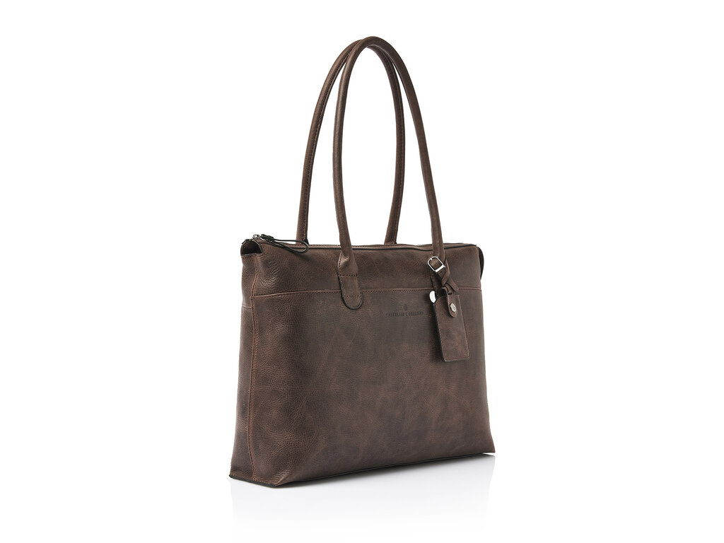 Compact 15,6" laptop and tablet bag. The main compartment has a foamed and protective laptop/tablet pocket. Apart from that the bag holds several zip pockets for personal belongings and documents. The leather shoulderstrap is adjustable and detachable. From the Carisma range, made from supple Italian bovine leather with a natural grain. The Italian leather is tanned in a sustainable way according to the protocols of the Leather Working Group.