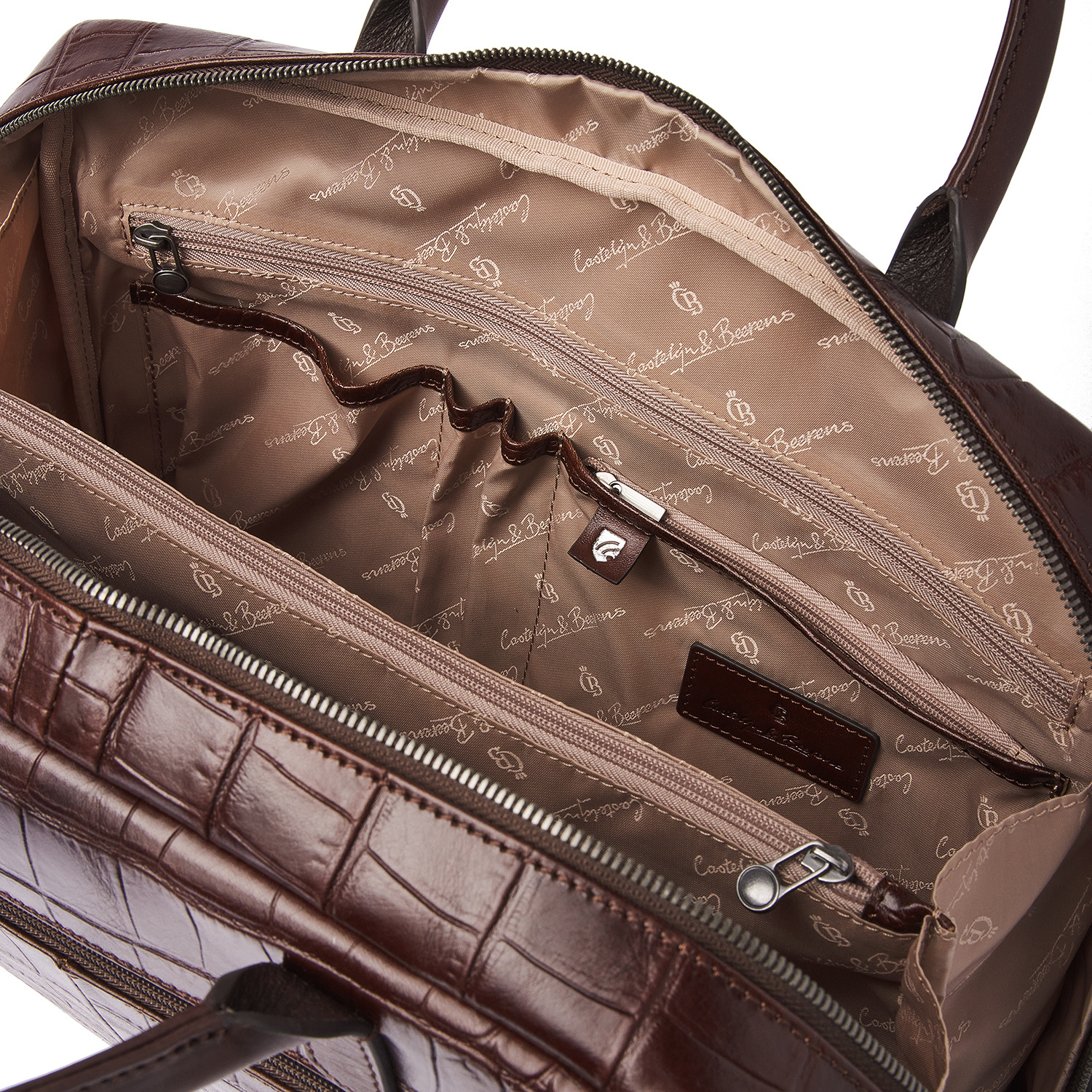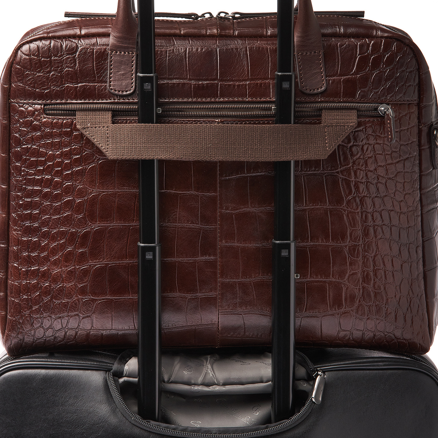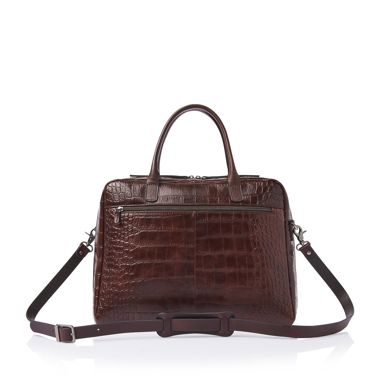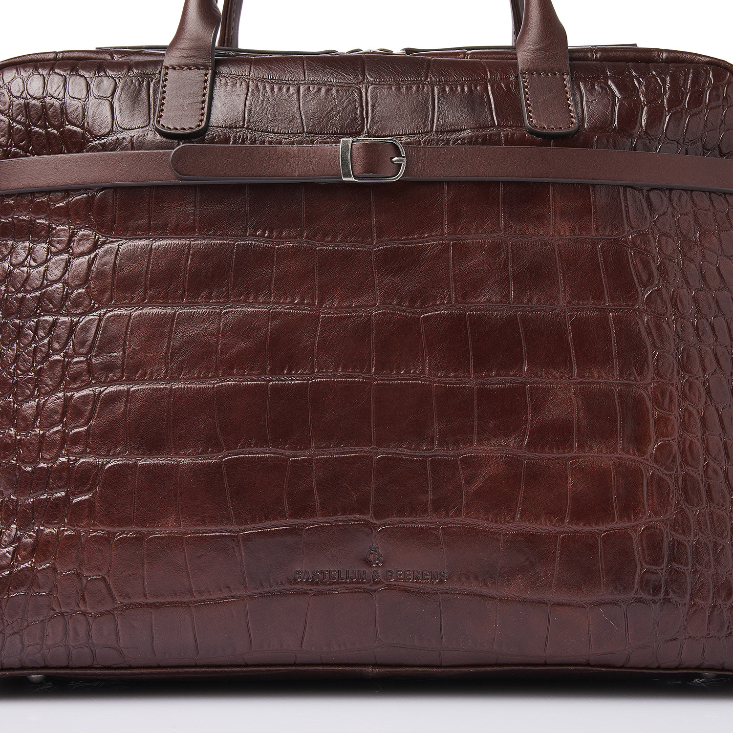 Lisa is a charming appearance, crafted with great attention to detail. For this collection, we developed high-quality bull leather with a classic croco print in collaboration with our Tuscan partner tannery. Not only stylish, but also a sustainable choice. The leather is vegetable tanned according to the guidelines of the Leather Working Group. The handles and shoulder straps are made of sturdy belt leather. This luxurious leather laptop bag features a shock-absorbing 15.6-inch laptop compartment and tablet compartment, an organiser section and a specially protected RFID zip pocket. The bag comes with a detachable leather shoulder strap and a practical trolley sleeve. Easy to carry by hand, over the shoulder or on a trolley handle. The refined C&B embossing completes the luxurious look.