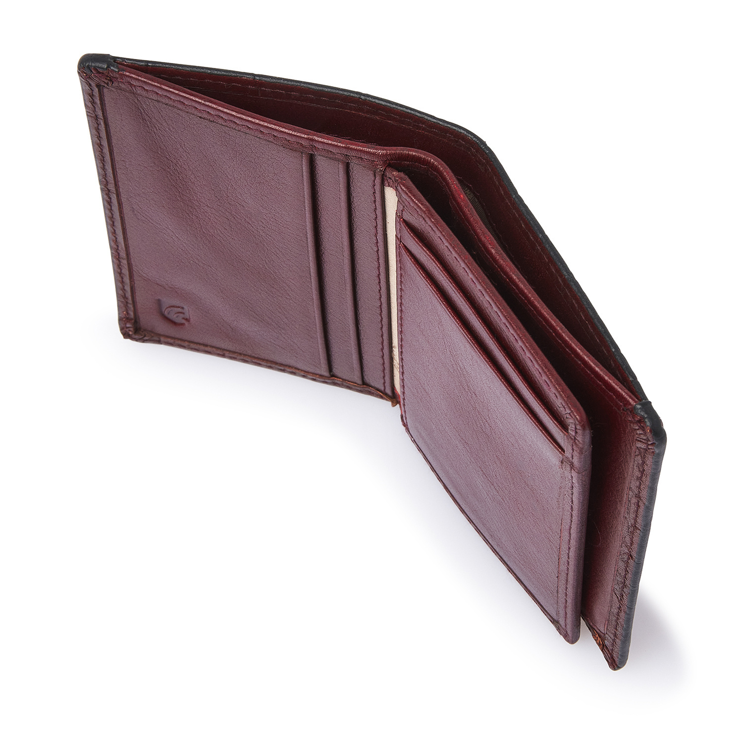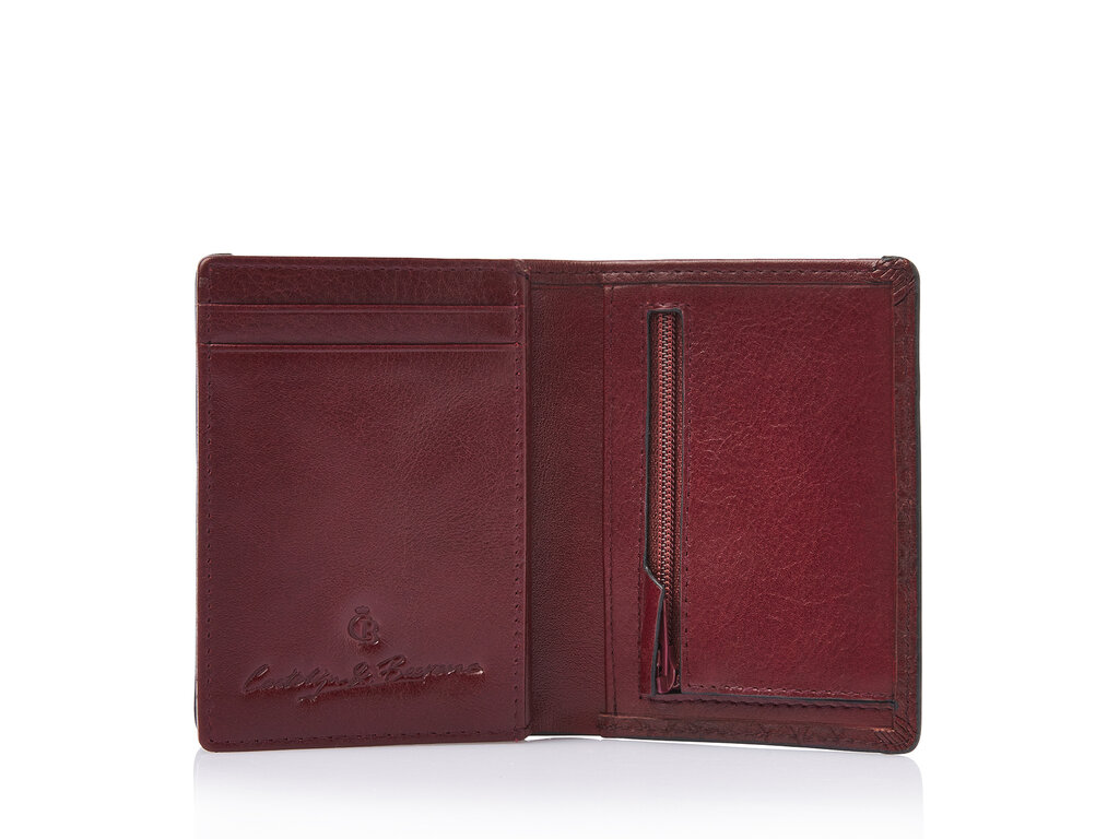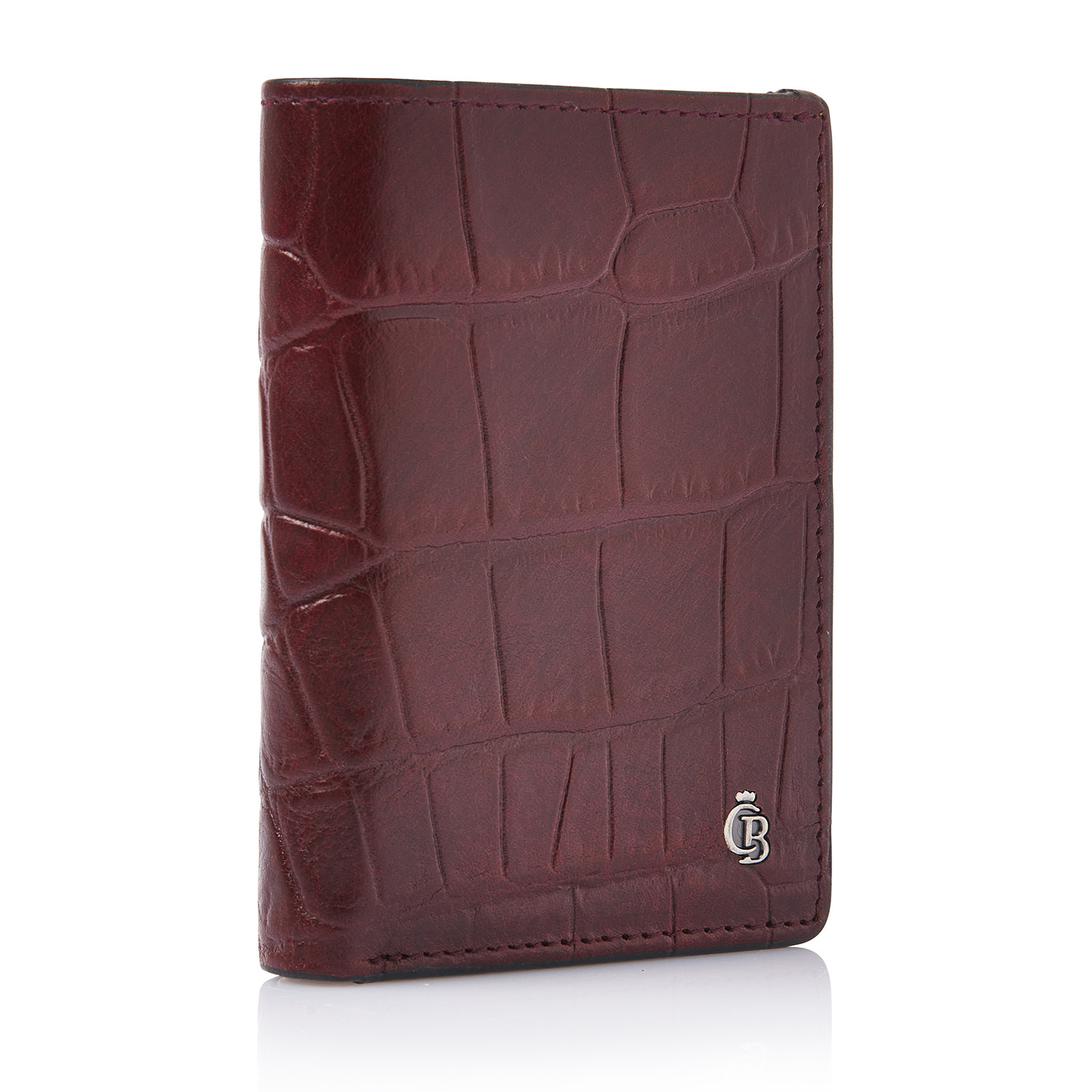 Elegant leather RFID mini wallet with room for up to 10 cards. Features a zip pocket for coins and a slip pocket for banknotes. The integrated high-tech foil fully blocks the reading of personal data via NFC chips. Crafted from sustainably tanned bull leather with a classic croco print. Finished with an antique-silver C&B logo.