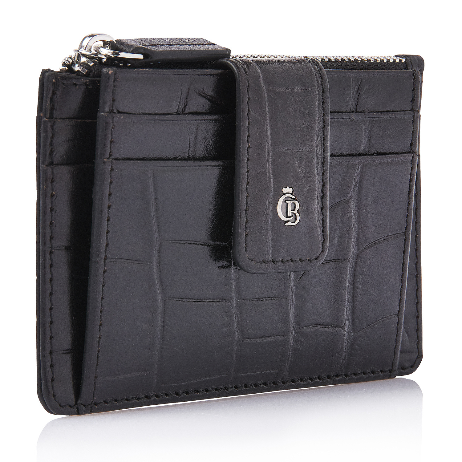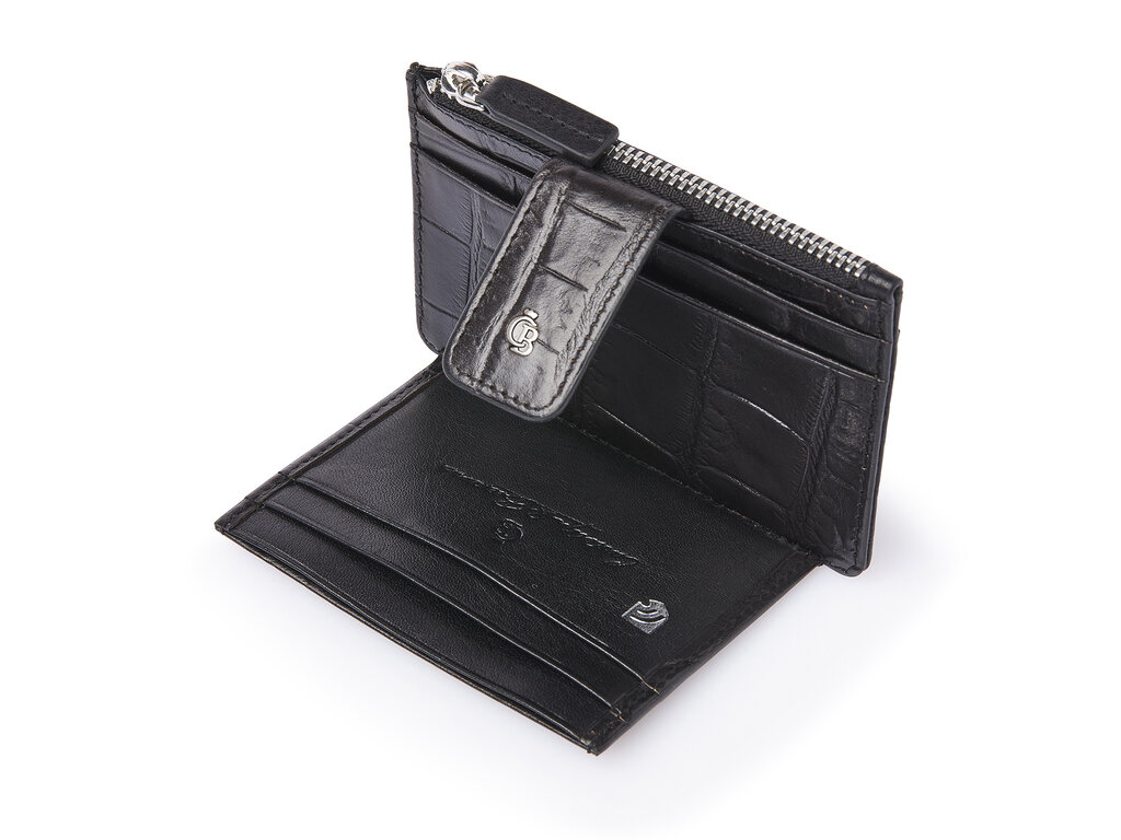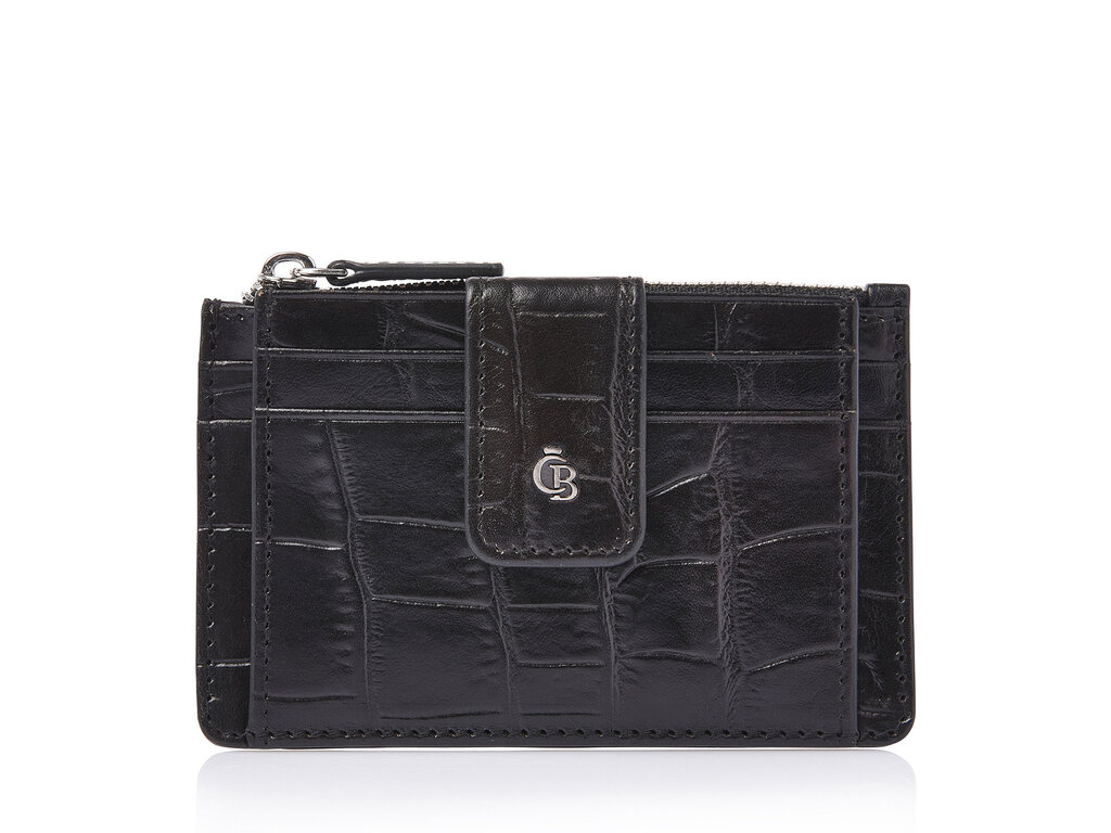 Compact leather RFID mini wallet with a zip pocket, ideal for your most-used cards and some cash. Crafted from premium vegetable-tanned bull leather with a classic croco print, developed in collaboration with our Tuscan partner tannery. Stylish, sustainable and practical. The antique-silver C&B metal logo enhances the luxurious look.