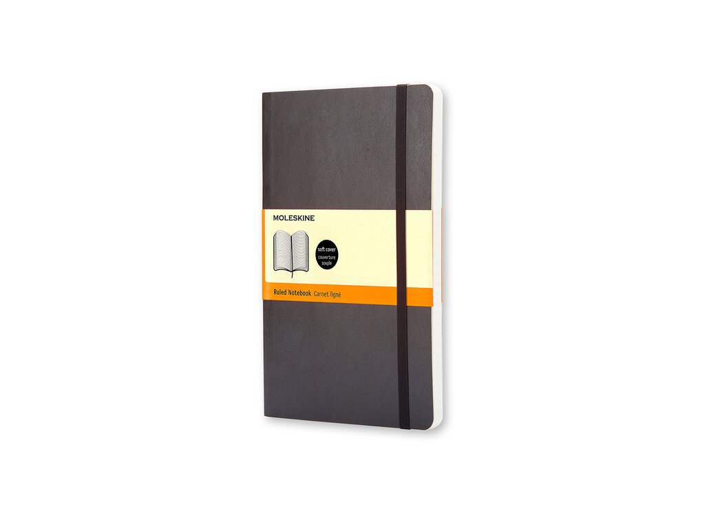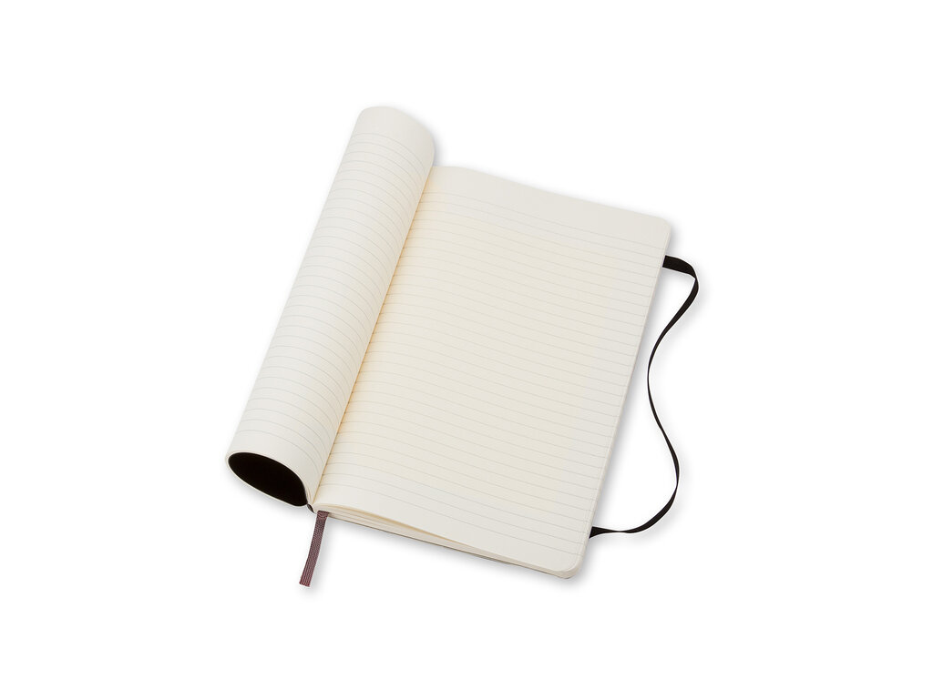 The perfect notebook for all your notes, thoughts, and memories. This Moleskine large notebook combines style and functionality with lined pages, a soft black cover, and rounded corners for an elegant look. The ribbon bookmark helps you easily find your latest notes, while the elastic closure keeps your pages securely together. A handy storage pocket at the back provides extra space for loose notes and documents. Ideal for daily use, both professionally and personally. It fits perfectly into our leather notebooks.