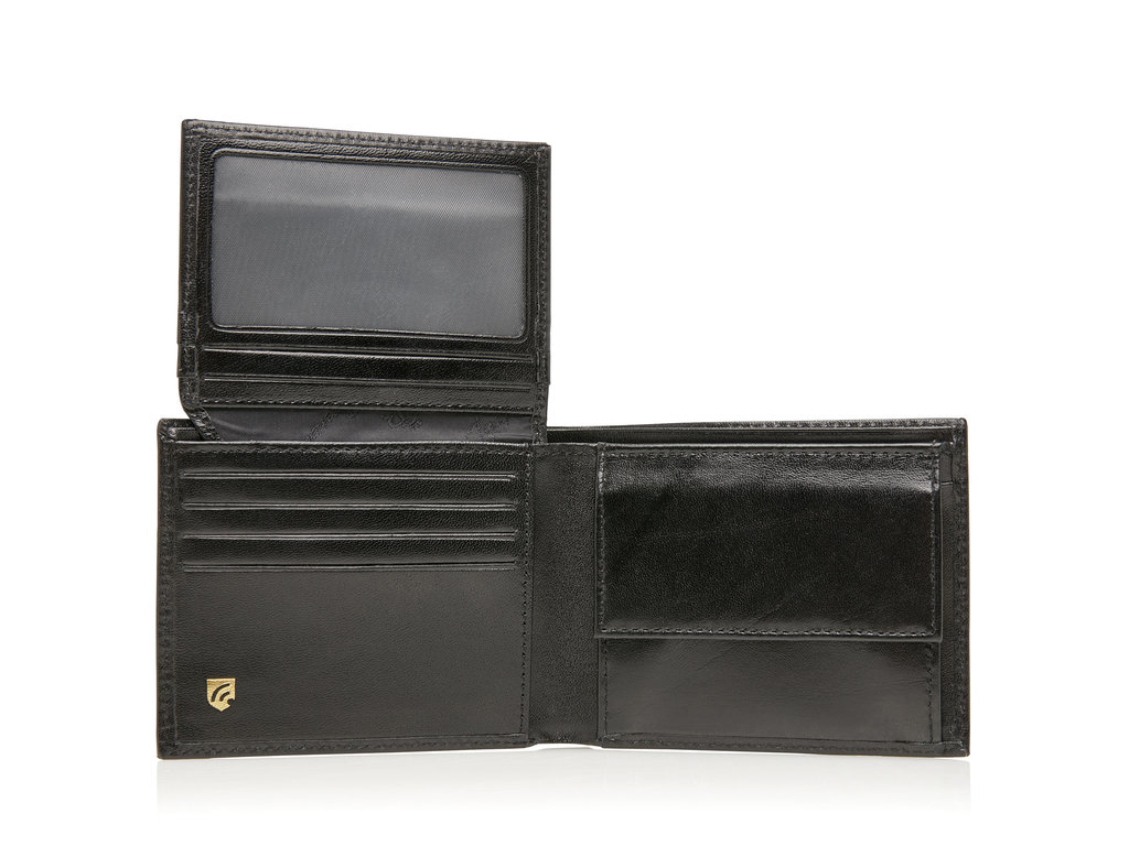 A classic, popular, RFID wallet that holds 9 creditcards, coin pocket with push button closing, 2 cash sleeves and ID window. The Nevada collection is equipped with a high-tech foil that prevents your personal data being skimmed through the RFID chip on your cards. The Nevada-range is made from firmly pressed, shiny Italian cowleather, finished with elegant metal C&B-logo.