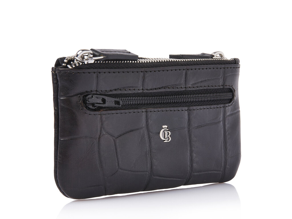 Stylish leather RFID key case with two main compartments and two key rings. For this collection, premium bull leather with a classic croco print was developed in collaboration with our Tuscan partner tannery. An elegant and sustainable choice, as the leather is vegetable-tanned according to Leather Working Group guidelines. The key case features a high-tech RFID foil that protects your personal data against skimming. Please note: this foil does not protect against hacking of keyless car keys.