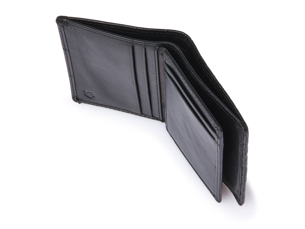 Mini-portefeuille RFID élégant en cuir pouvant accueillir jusqu’à 10 cartes. Équipé d’une poche zippée pour la monnaie et d’un compartiment pour les billets. Le film haute technologie intégré bloque totalement la lecture des données via les puces NFC. Réalisé en cuir durablement tanné avec un imprimé croco classique et fini par un logo C&B vieil argent.