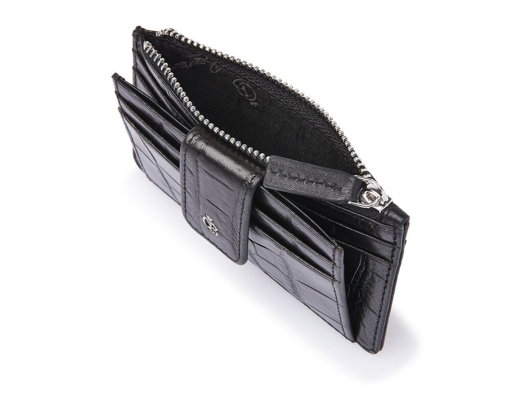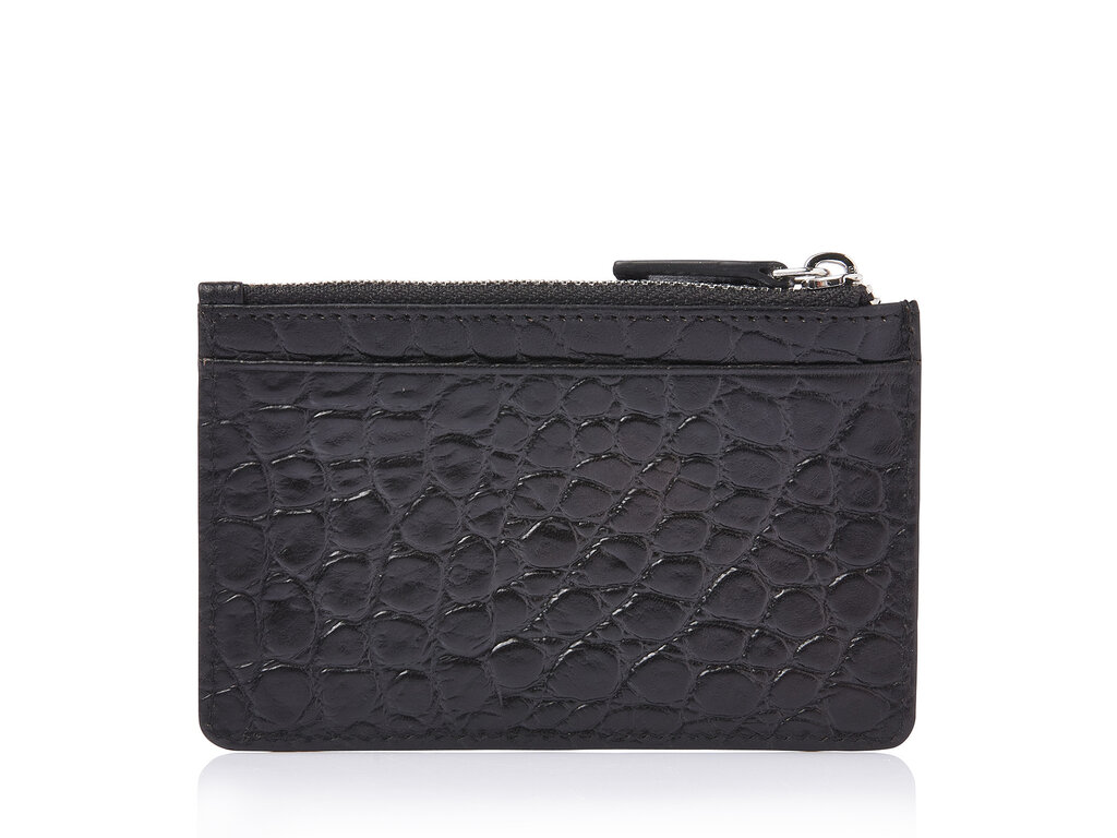 Mini-portefeuille RFID compact en cuir avec poche zippée, idéal pour vos cartes les plus utilisées et un peu d’argent liquide. Fabriqué en cuir de taureau tanné végétalement avec un imprimé croco classique, développé avec notre tannerie partenaire toscane. Élégant, durable et pratique. Le logo C&B en métal vieil argent souligne son aspect luxueux.