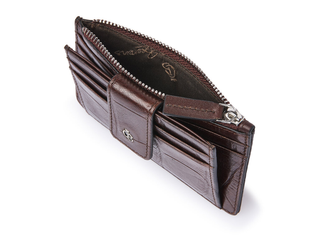 Mini-portefeuille RFID compact en cuir avec poche zippée, idéal pour vos cartes les plus utilisées et un peu d’argent liquide. Fabriqué en cuir de taureau tanné végétalement avec un imprimé croco classique, développé avec notre tannerie partenaire toscane. Élégant, durable et pratique. Le logo C&B en métal vieil argent souligne son aspect luxueux.