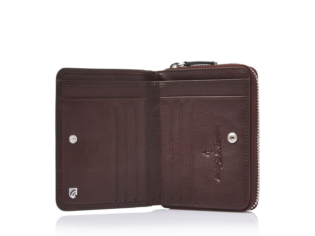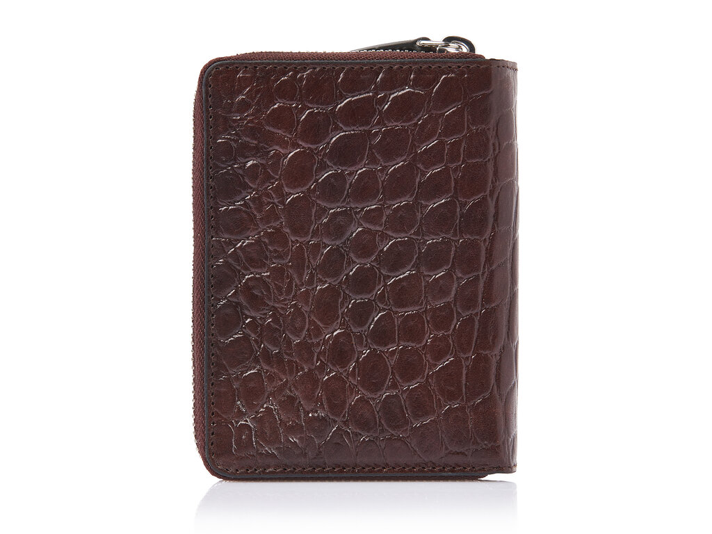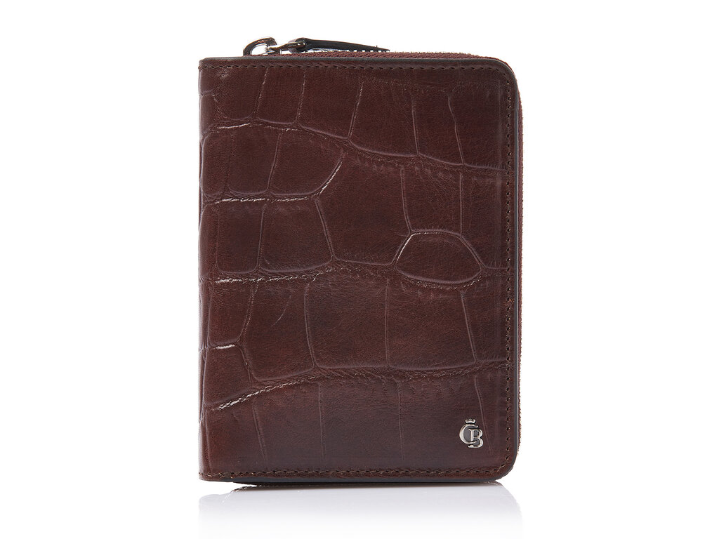 Portefeuille RFID élégant en cuir avec compartiments pour billets et poche zippée pour la monnaie. Équipé de 8 emplacements pour cartes et d’un film RFID intégré offrant une protection complète des données. Fabriqué en cuir de taureau tanné végétalement avec un imprimé croco classique et fini par un logo C&B vieil argent.