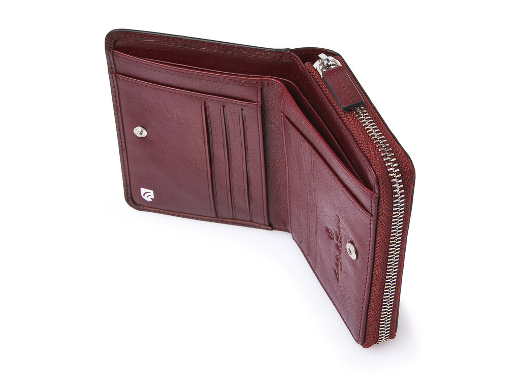 Portefeuille RFID élégant en cuir avec compartiments pour billets et poche zippée pour la monnaie. Équipé de 8 emplacements pour cartes et d’un film RFID intégré offrant une protection complète des données. Fabriqué en cuir de taureau tanné végétalement avec un imprimé croco classique et fini par un logo C&B vieil argent.