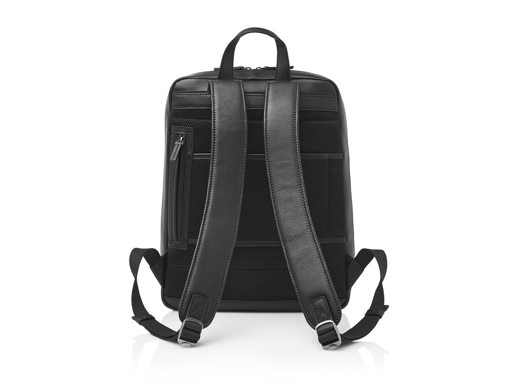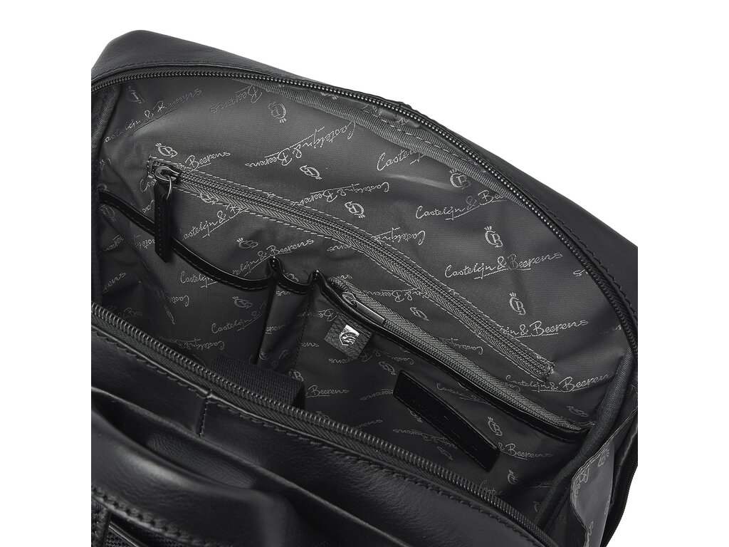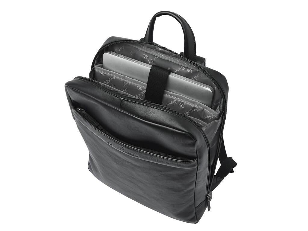 Élégant sac à dos en cuir pour ordinateur portable, muni de compartiments renforcés pour ordinateur portable 15,6" et pour tablette, pourvu de plusieurs poches à fermeture éclair et d’un organisateur pratique. Meilleur confort de portage grâce à la partie dorsale renforcée ainsi que des bretelles en cuir solides et réglables. Le sac à dos est confectionné dans un superbe cuir de bœuf italien et présente un aspect naturel, légèrement huilé. Le logo de qualité C&B a été imprimé subtilement dans le cuir.