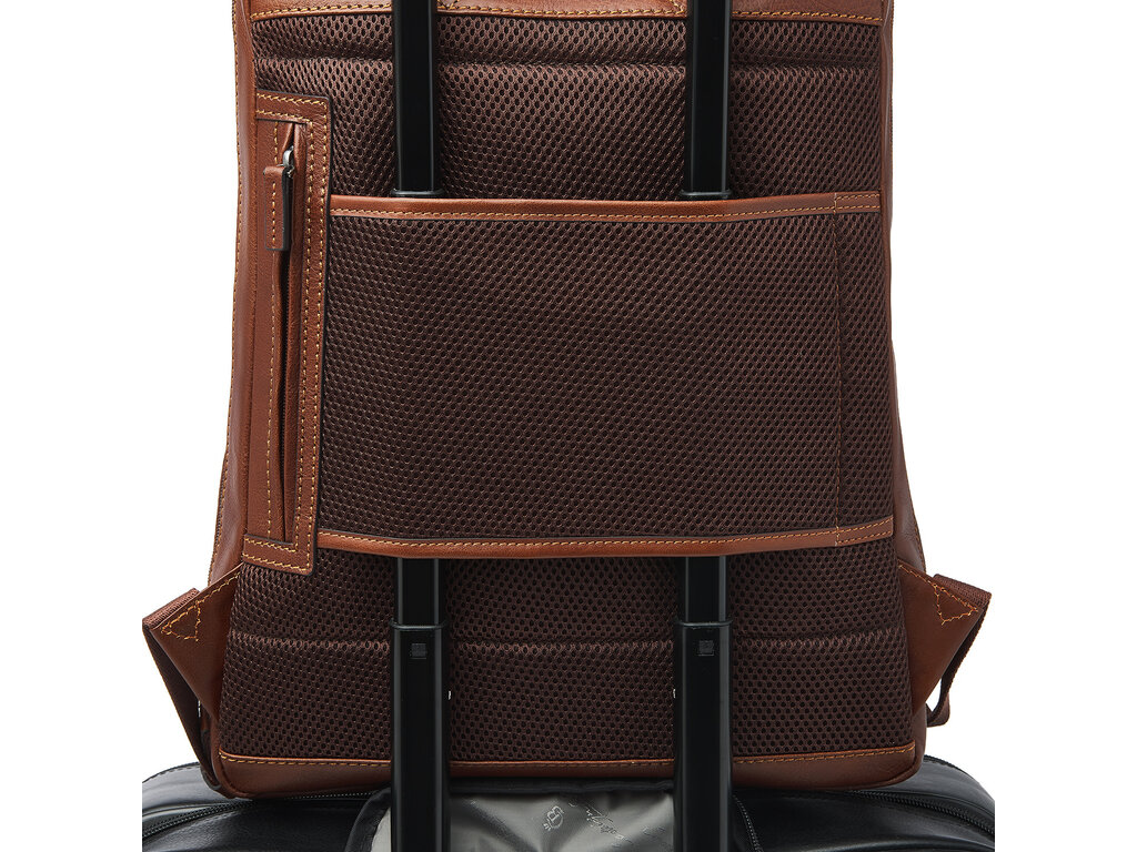 Élégant sac à dos en cuir pour ordinateur portable, muni de compartiments renforcés pour ordinateur portable 15,6" et pour tablette, pourvu de plusieurs poches à fermeture éclair et d’un organisateur pratique. Meilleur confort de portage grâce à la partie dorsale renforcée ainsi que des bretelles en cuir solides et réglables. Le sac à dos est confectionné dans un superbe cuir de bœuf italien et présente un aspect naturel, légèrement huilé. Le logo de qualité C&B a été imprimé subtilement dans le cuir.