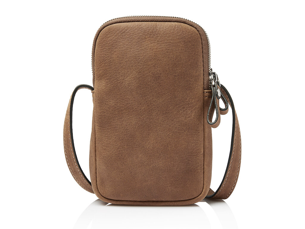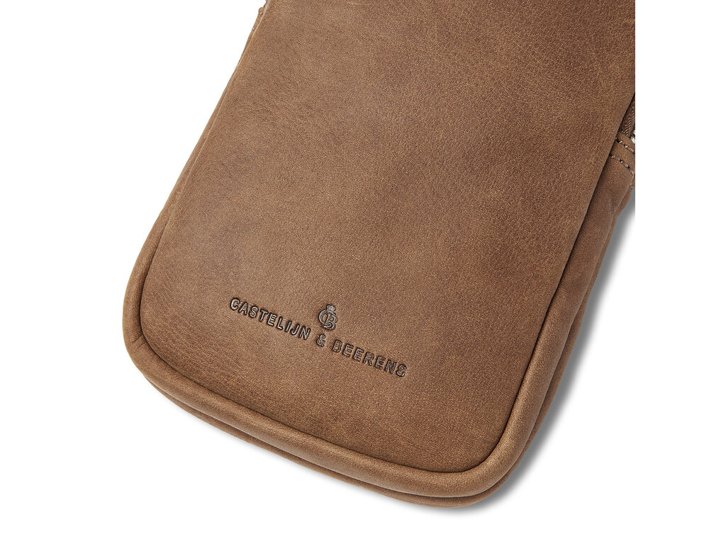 Élégant, fonctionnel et durable. Ce sac téléphone en bandoulière a tout pour plaire. Les 2 compartiments zippés séparés offrent de la place pour un smartphone et, par exemple, un petit portefeuille ou des lunettes. Le sac dispose également de 3 emplacements pour cartes de crédit et d'une bandoulière en cuir réglable. Pour cette collection, nous avons développé, en collaboration avec notre tannerie partenaire italienne, un cuir souple de haute qualité. Non seulement intemporel, mais aussi un choix durable. Le cuir est en effet tanné végétalement selon les directives du Leather Working Group.
