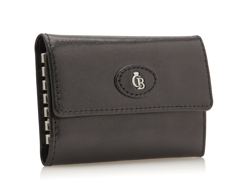Porte-clés RFID en cuir très compact avec six petits crochets pour y attacher vos clés de manière ordonnée. Ce porte-clés en cuir est en outre pourvu d'une poche à fermeture éclair, petite, mais pratique. La collection Gaucho possède une feuille high-tech qui bloque complètement la lecture de vos données personnelles qui se fait par l’intermédiaire de la puce RFID présente dans vos cartes. La feuille ne functioner pas avec les clés voitures de télécommande. Ce porte-clés en cuir de la gamme Gaucho de Castelijn & Beerens a été confectionné en cuir de taureau traité à l'aide d'un vernis transparent et arbore le superbe logo C&B dans un ovale en cuir. Ce porte-clés en cuir est disponible dans les couleurs noire et moka.