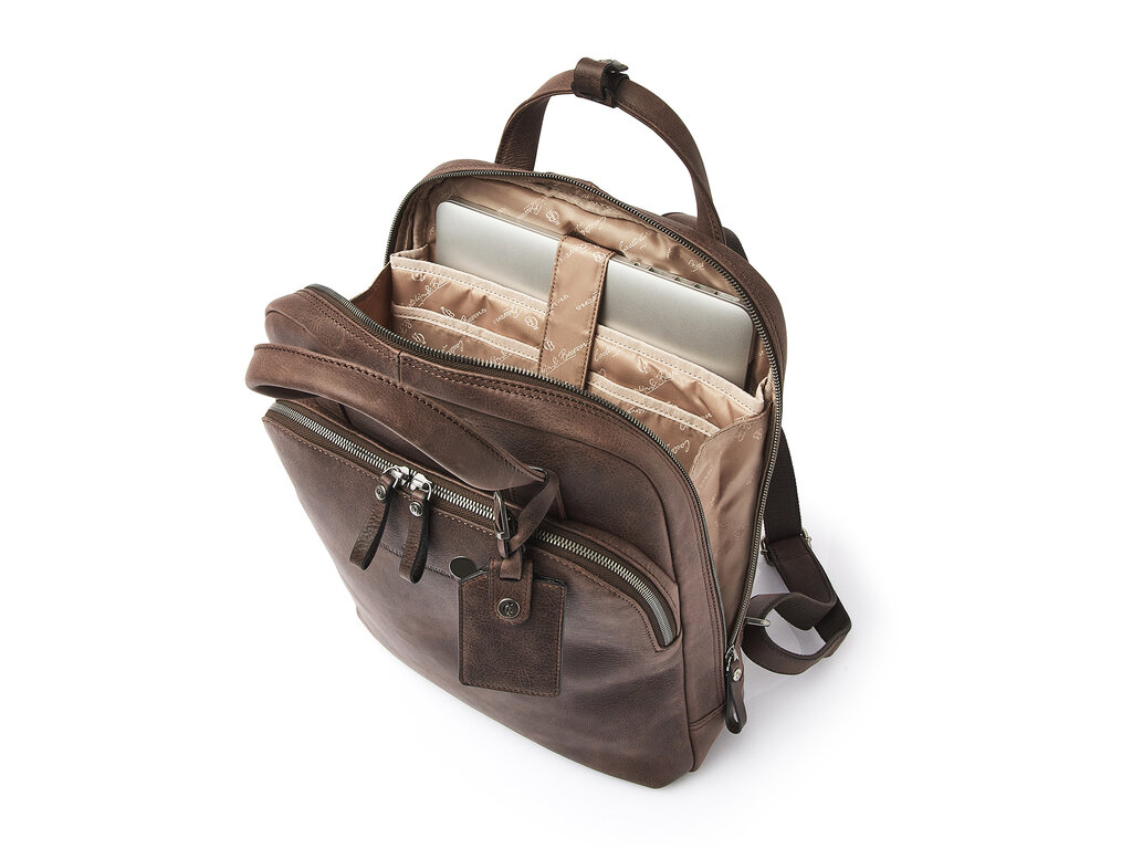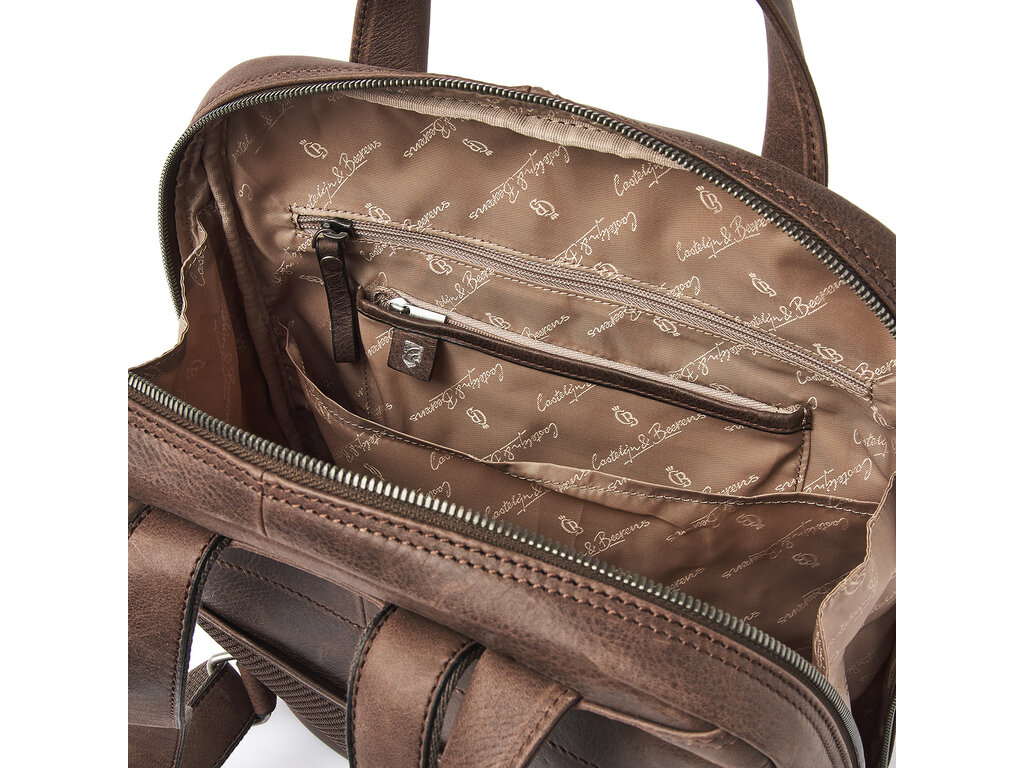 Sac à dos pour ordinateur, pourvu d’un logement 15,6" pour un ordinateur et d’un logement pour une tablette, différentes poches à fermeture éclair et un organisateur pratique pour le téléphone, les stylos, les cartes de visite, etc. Confort d’utilisation extra grce au dos renforcé et aux bandoulières solides et réglables en cuir. La collection Carisma est confectionnée à base de cuir italien souple avec nervure naturelle. Le cuir italien est tanné de manière durable selon les protocoles de Leather Working Group. Le sac à dos est livré avec une housse de pluie pratique de Castelijn & Beerens.