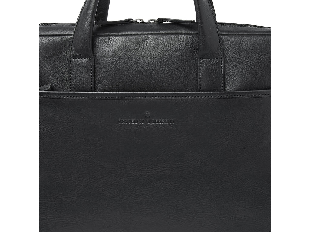 Business in style. Cette sacoche pour ordinateur portable est munie d’un compartiment pour ordinateur et tablette 15,6" absorbant les chocs, d’un compartiment compact pour les dossiers A4, papiers et accessoires d’ordinateur, et fait une première impression inoubliable. Dans le compartiment à fermeture éclair spécial RFID, vos cartes bancaires, cartes de crédit et documents d’identité seront protégés contre le skimming. La sacoche pour ordinateur portable en cuir est pourvue d’une bandoulière amovible en cuir et d’une bande de transport très pratique. Vous pourrez la transporter à la main, sur votre épaule ou sur un chariot à roulettes. Cette sacoche ordinateur en cuir a été confectionné dans un magnifique cuir de bœuf italien. Le logo C&B est intégré subtilement.