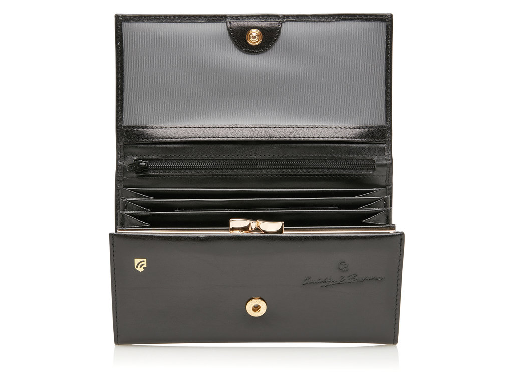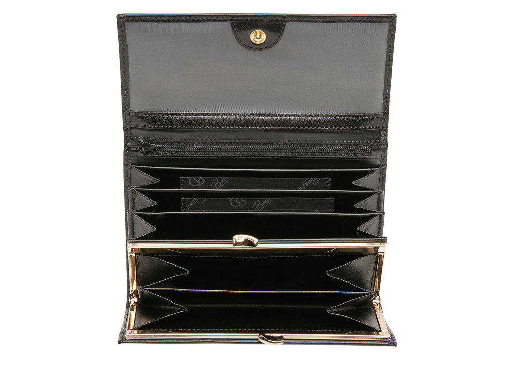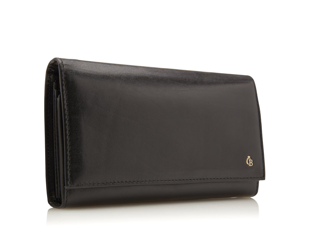 RFID Porte-monnaie femme cuir pratique et très large avec une fermeture à rabat et une grande poche avec étrier de fermeture. Ce grand porte-monnaie en cuir pour femme possède en outre trois grandes poches, des logements pour six cartes et une pochette avec fermeture éclair. La collection Nevada possède une feuille high-tech qui bloque complètement la lecture de vos données personnelles qui se fait par l’intermédiaire de la puce RFID présente dans vos cartes. Ce porte-monnaie en cuir pour femme de la gamme Nevada a été confectionné à partir d'un cuir de bœuf unique et arbore le logo couleur laiton de C&B, subtilement incrusté dans le cuir. Ce porte-monnaie porte-cartes en cuir pour femme est disponible dans les couleurs noire et bordeaux.