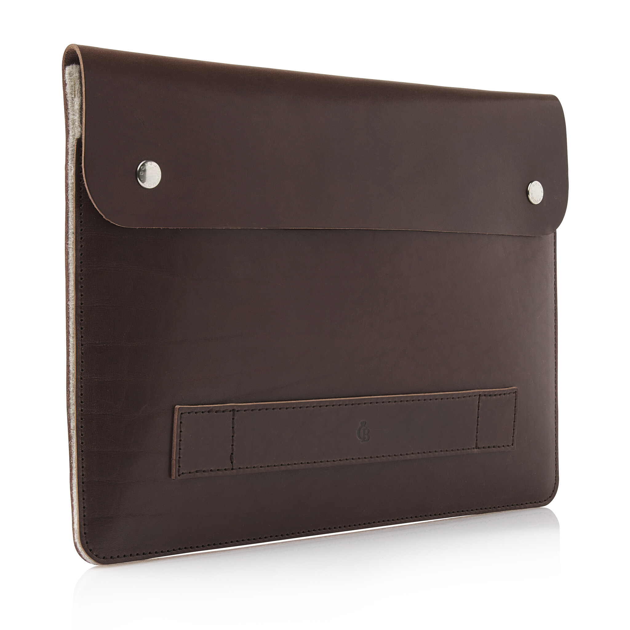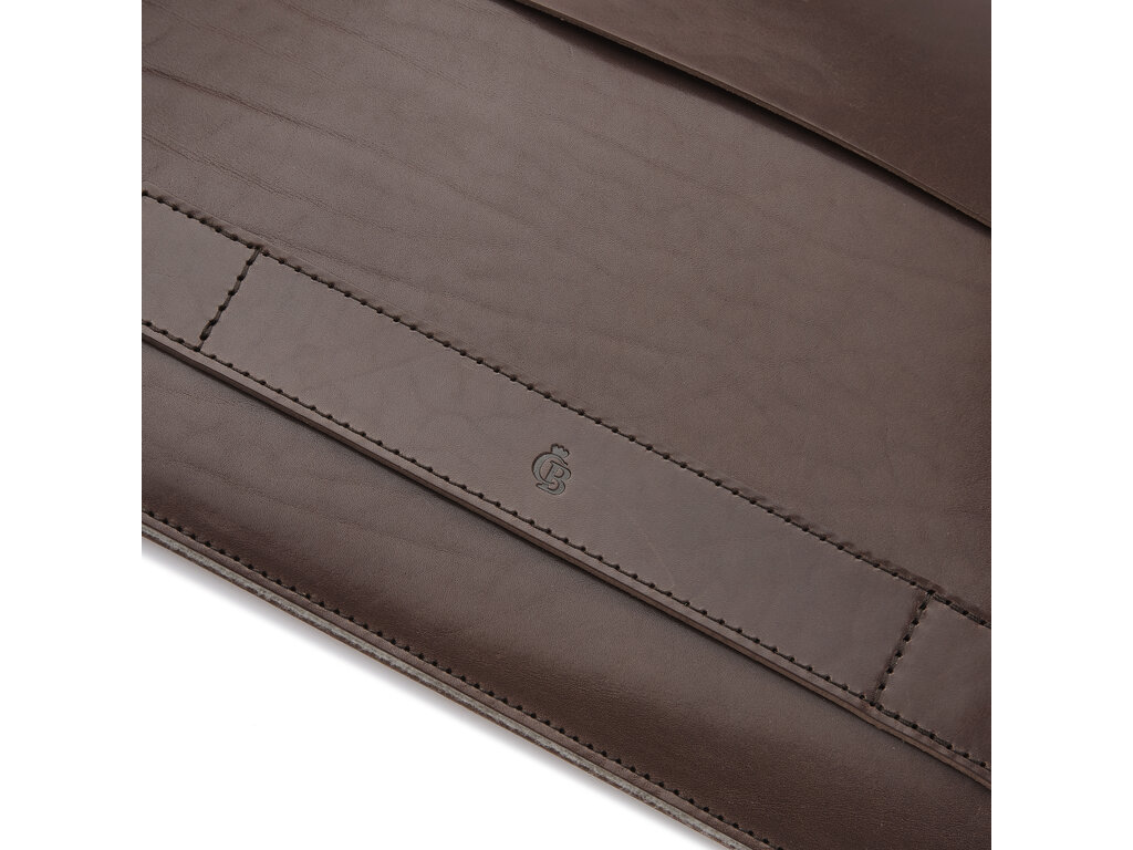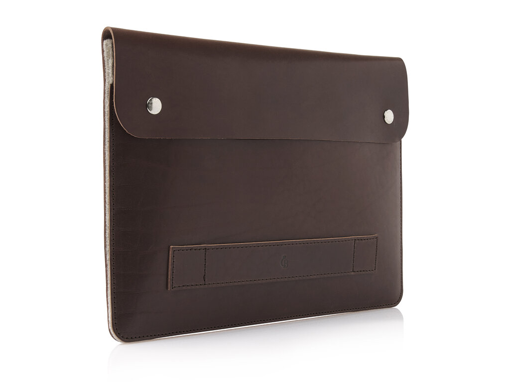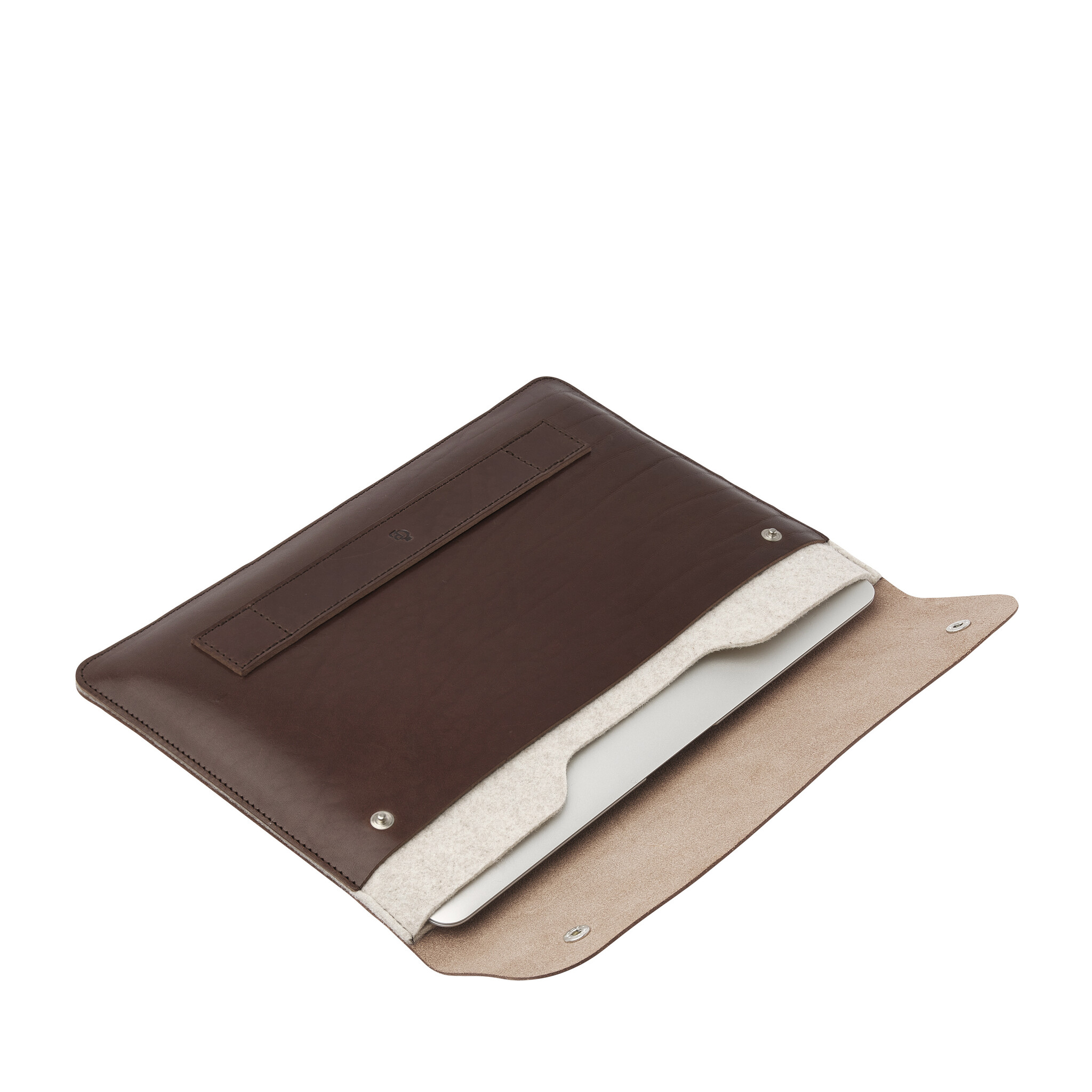 Protégez votre ordinateur avec style grâce à cette pochette ordinateur en cuir. Convient aux MacBook 13". Cette pochette ordinateur est fabriquée en cuir de haute qualité tanné végétal et doublée de feutre Italien. La pochette est entièrement produite aux Pays-Bas dans notre atelier à Waalwijk. De plus, c'est un choix durable, car ce cuir est tanné de manière durable conformément aux les directives du Leather Working Group et le feutre est fabriqué de laine 50 % recyclée (certifié GRS). Disponible en noir, mocca et cognac.