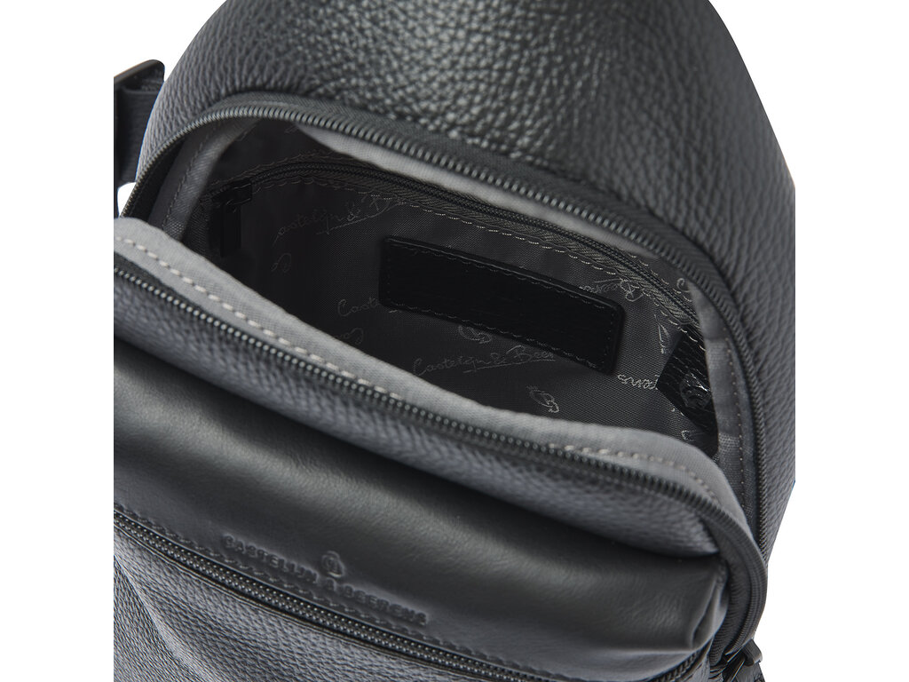 Soyez bien préparé pour vos voyages avec ce sac Sling de la collection Onyx. Tous vos essentiels se rangent facilement dans les différentes poches zippées, dont l'une est dotée d'une doublure RFID de haute technologie. Celle-ci protège les cartes et les passeports contre l'écrémage. La bandoulière réglable peut être portée à gauche comme à droite. Durable aussi, car le cuir italien est tanné selon les directives du Leather Working Group. Les modèles intemporels de la collection ONYX se caractérisent par l'association d'un élégant cuir grainé et d'une bandoulière horizontale dans laquelle le logo C&B est subtilement embossé. La couleur ? ...un noir élégant.