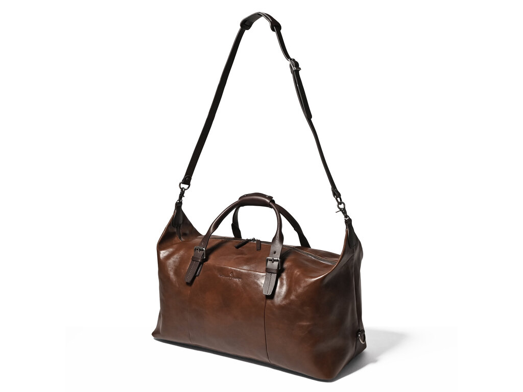Le Sac de Voyage de la collection Rien est un compagnon de voyage élégant. Le cuir est tanné végétal selon la tradition toscane séculaire et teinté à la main. Cela met en valeur les marques naturelles du grain et garantit que chaque sac est unique. Ce sac de week-end spacieux permet de ranger facilement tous les articles essentiels pour un voyage de fin de semaine. La pochette zippée spéciale RFID protège les cartes bancaires et le passeport contre l'écrémage. Il peut être porté à la main ou à l'épaule grâce à la bandoulière réglable en cuir. Rien : intemporel, classique et exclusif.
