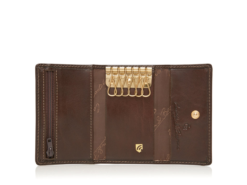 Zeer compact leren RFID sleuteletui met 6 kleine haakjes om uw sleutels te bevestigen en overzichtelijk weg te bergen. Het sleuteletui is bovendien voorzien van een klein maar handig extra ritsvakje. De Gaucho collectie is uitgerust met een high-tech folie, dat het uitlezen van de persoonlijke gegevens via de RFID-chip op uw pasjes verhindert. De folie beschermt niet tegen het hacken van contactloze autosleutels. Dit sleuteletui uit de Gaucho-serie van Castelijn & Beerens is gemaakt van stierenleer behandeld met een transparante verfstof en is afgewerkt met het sierlijke C&B-logo in een leren ovaaltje. Het sleuteletui is verkrijgbaar in de kleuren zwart en mocca.