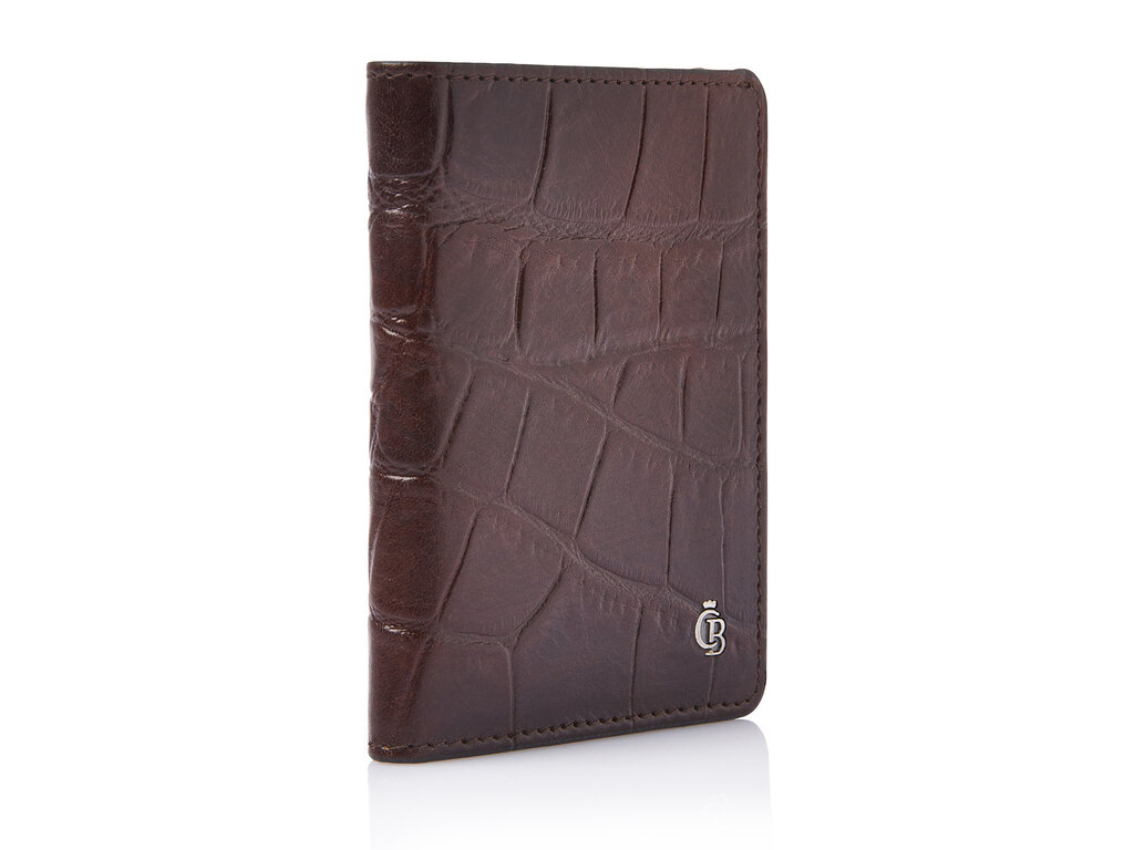 Compacte leren creditcard etui met ruimte voor 6 pasjes en briefgeld. De geïntegreerde RFID-folie voorkomt het ongewenst uitlezen van persoonlijke gegevens via de RFID-chips op uw pasjes. Vervaardigd uit hoogwaardig plantaardig gelooid stierenleer met een klassieke croco-print, ontwikkeld samen met onze Toscaanse partnerlooierij. Het oudzilveren C&B-logo geeft de etui een verfijnde, luxe afwerking.