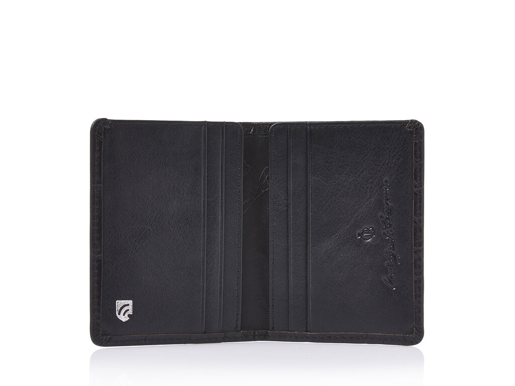 Compacte leren creditcard etui met ruimte voor 6 pasjes en briefgeld. De geïntegreerde RFID-folie voorkomt het ongewenst uitlezen van persoonlijke gegevens via de RFID-chips op uw pasjes. Vervaardigd uit hoogwaardig plantaardig gelooid stierenleer met een klassieke croco-print, ontwikkeld samen met onze Toscaanse partnerlooierij. Het oudzilveren C&B-logo geeft de etui een verfijnde, luxe afwerking.