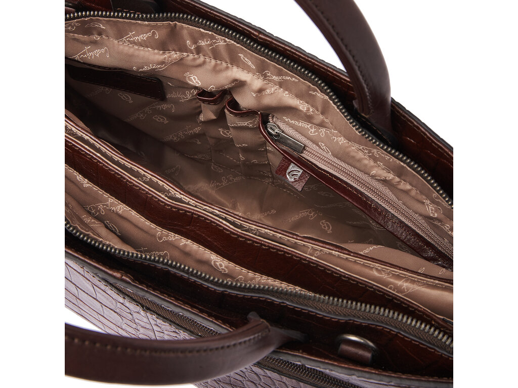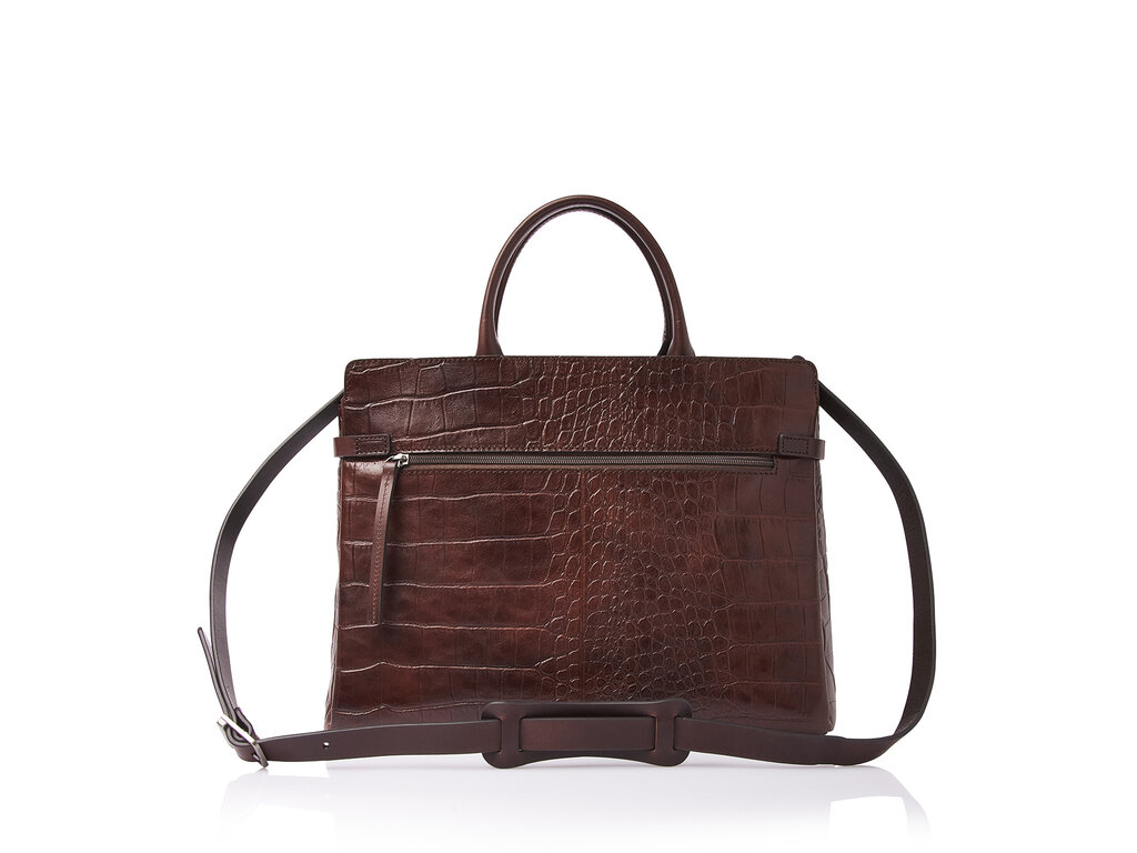 Kaat combineert tijdloos design met ingetogen eenvoud en verfijnde klasse. Voor deze collectie ontwikkelden we samen met onze Toscaanse partner-looierij hoogwaardig stierenleer met een klassieke croco-print. Het leer is plantaardig gelooid volgens de richtlijnen van de Leather Working Group en staat voor duurzaamheid en kwaliteit. De handvatten en schouderbanden zijn gemaakt van stevig riemenleer. Deze elegante laptoptas is voorzien van een ruim ritsvak, een schokabsorberend laptopvak voor laptops tot 15,6 inch en een apart tabletvak. Het geïntegreerde RFID-ritsvak beschermt uw kaarten en paspoort tegen skimmen. Kaat heeft een afneembare leren schouderband en een subtiel weggewerkte trolleyband, waardoor de tas zowel in de hand, over de schouder als op de trolley comfortabel te dragen is. De verfijnde C&B-preeg maakt de luxe look compleet. Tijdloos, functioneel en exclusief.