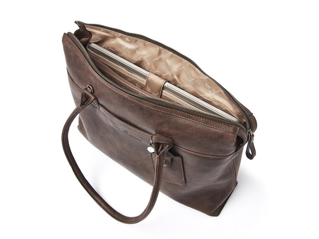 Compacte laptoptas voor 15,6" laptop en tablet. Het hoofdcompartiment heeft een met foam gevoerd laptop/tablet-vak. Buiten dat heeft de tas diverse rits- en steekvakken voor je persoonlijke benodigdheden en documenten. De lederen schouderband is verstelbaar en afneembaar. De Carisma collectie is vervaardigd uit soepel Italiaans leder met een natuurlijke nerf. Het Italiaanse leer is duurzaam gelooid volgens richtlijnen van de Leather Working Group.
