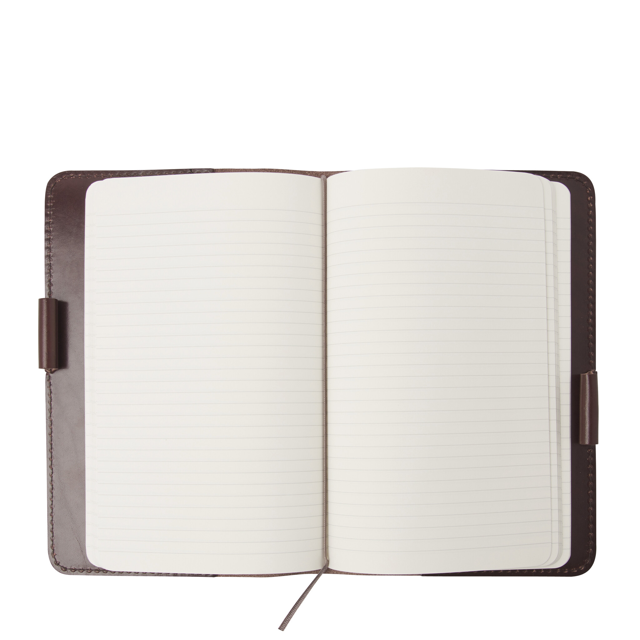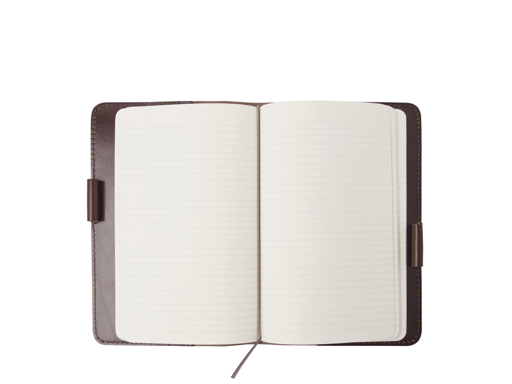 Leren notebook cover in A5 formaat voorzien van balpen en inclusief een gelinieerd Moleskine notebook. Met liefde door onze vakmensen gemaakt in ons atelier te Waalwijk. Ideaal notitieblok voor je briljante ideeën, reisverslagen, bucket-lists of inspiraties. Verkrijgbaar in zwart, mocca en cognac.