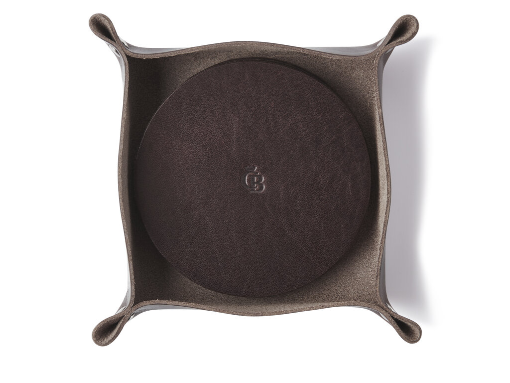 Geniet extra van je drankje met deze set van 6 onderzetters in handig bakje, gemaakt uit Italiaans runderleer. Gemaakt in ons atelier in Waalwijk en verkrijgbaar in zwart, mocca en cognac.