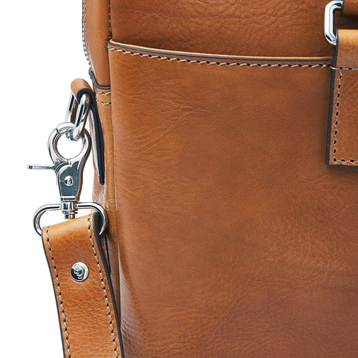Rick uit de Heritage-collectie belichaamt tijdloos design, ingetogen eenvoud en verfijnde klasse. Deze leren laptoptas beschikt over twee ruime ritsvakken, een schokabsorberend 15,6" laptopvak en een apart tabletvak. Daarnaast is er voldoende ruimte beschikbaar voor een A4-map, documenten en diverse laptopaccessoires. Een geïntegreerd RFID-ritsvak biedt bescherming tegen skimmen van bankpassen, creditcards en paspoort. De tas is uitgerust met een afneembare leren schouderband en een functionele trolleyband, subtiel verborgen in het achtervak voor een gestroomlijnde uitstraling. Net als de andere modellen in de Heritage-collectie onderscheidt Rick zich door een puur en tijdloos ontwerp. De minimalistische vormgeving laat het plantaardig gelooide leer volledig tot zijn recht komen. Dit hoogwaardige Italiaanse leer is duurzamer geproduceerd volgens de richtlijnen van de Leather Working Group en kenmerkt zich door een natuurlijke nerfstructuur, waardoor elke tas uniek is in zijn soort. Heritage: functioneel, stijlvol en met zorg vervaardigd.